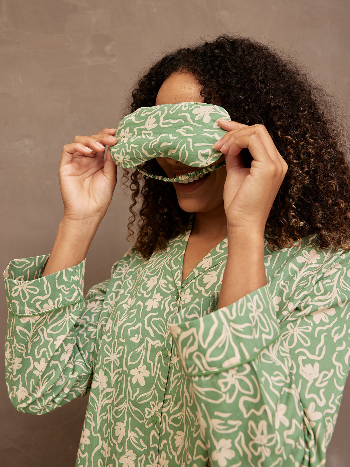 These super popular Rosie shirt and trouser pyjama sets come with a free matching padded eye mask, ensuring you get your best night's sleep. Amazing value, amazing comfort - while supporting children in education and paying better wages to garment workers. You can rest easy!