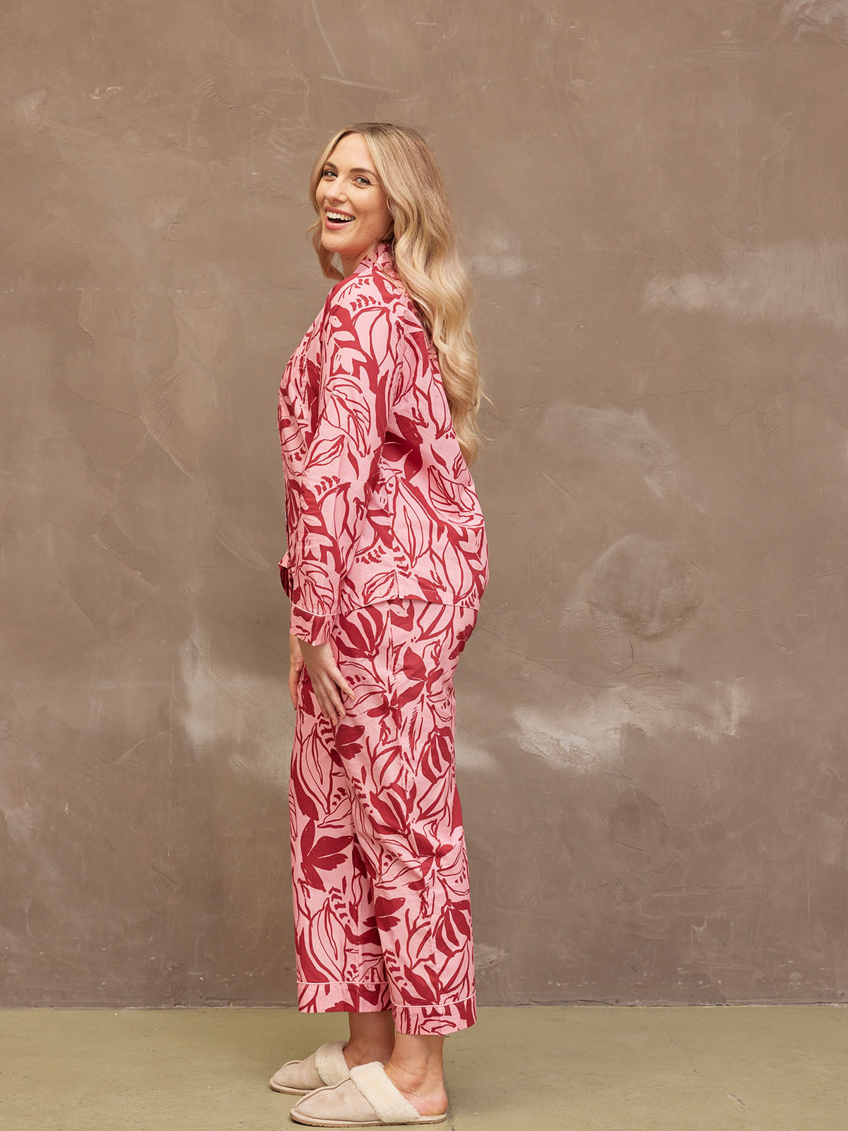 Made in cotton poplin fabric these button down pyjamas are super comfortable and super stylish - way too pretty just to wear to bed! Once you see past the fabulous eye catching prints, you’ll also notice all those little details that make these sustainable PJ sets extra luxurious: The piping on the cuffs and trouser edges, the deep pockets in the pyjama bottoms and the pocket detail on the shirt all add up to make these super comfortable pyjamas a cut above the rest.