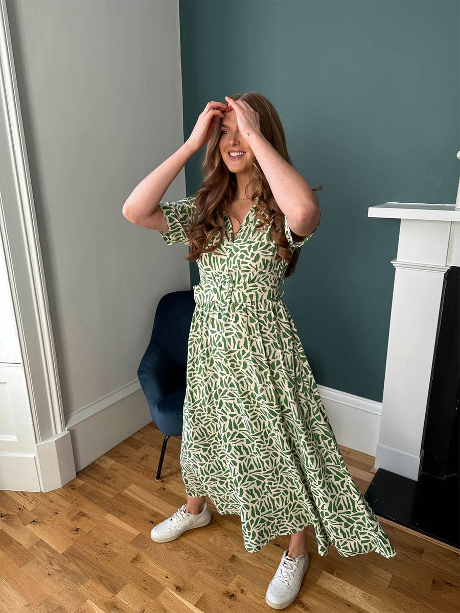 Camilla - Belted Shirt Dress - Green Terrazzo Print