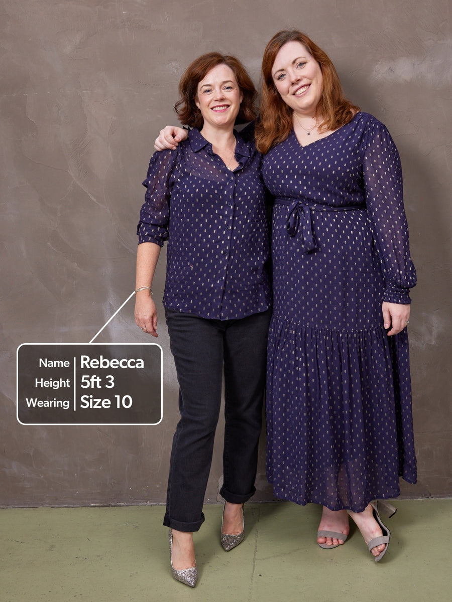 A beautiful sheer, long sleeve lurex shirt with a gorgeous gold dobby pattern - this is the new go-to shirt in your wardrobe. Made from the same sustainable fabric as our show-stopping Melissa dress, the Collette shirt is perfect combined with our Lana trousers for that slightly fancier occasion in the winter months.