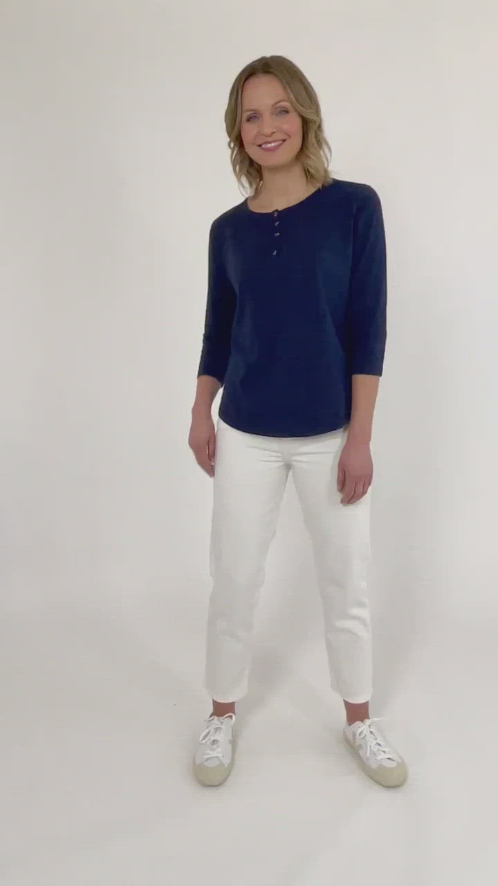 This chilled, comfortable long-sleeve top in a deep, gorgeous navy is the perfect addition to your wardrobe and a superb combo for jeans, culottes or layered under dungarees.