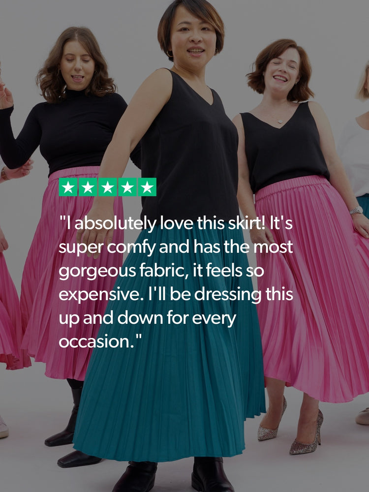 Who doesn't need a sustainable pleated midi skirt in their wardrobe? After the incredibly popular Gill skirts in previous collections, we now bring you the gorgeous Jane.