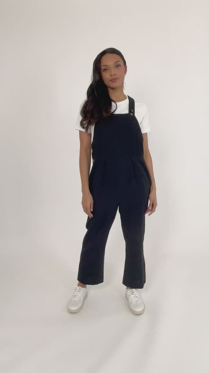 Our superb Kathleen dungarees in a crisp black have all you need for a stylish, comfortable outfit that will rock this summer, at any occasion.