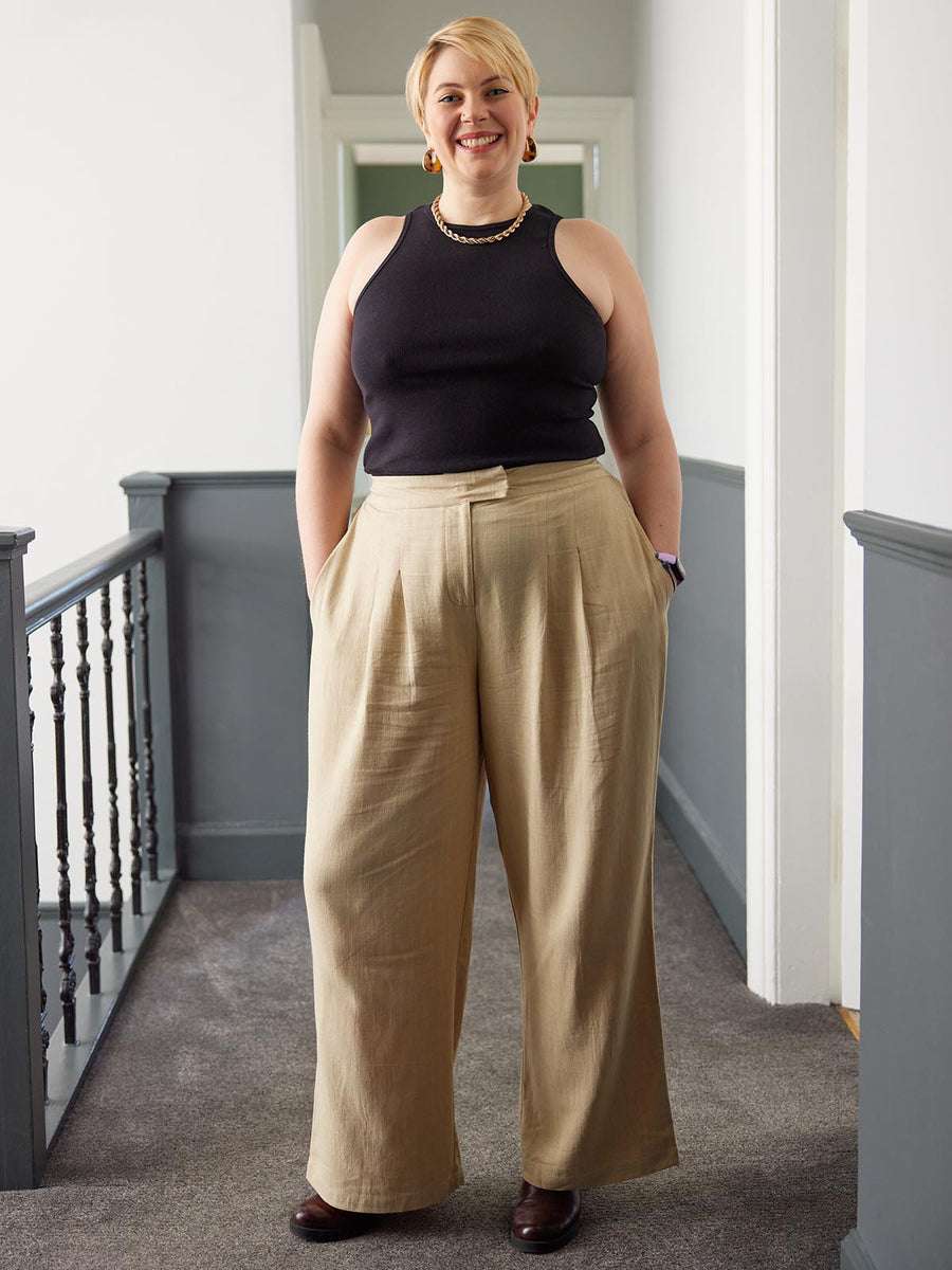 Our customers have fallen in love with these sustainable trousers thanks to the stylish high-waisted design combined with front pleats - delivering a smart appearance whilst remaining super comfy thanks to the elasticated back waist. They are made from a sustainable Livaeco viscose and flax blend, making them kinder to the environment. And that's even before we begin to talk about the fact they’re produced using the Unfolded zero waste approach.