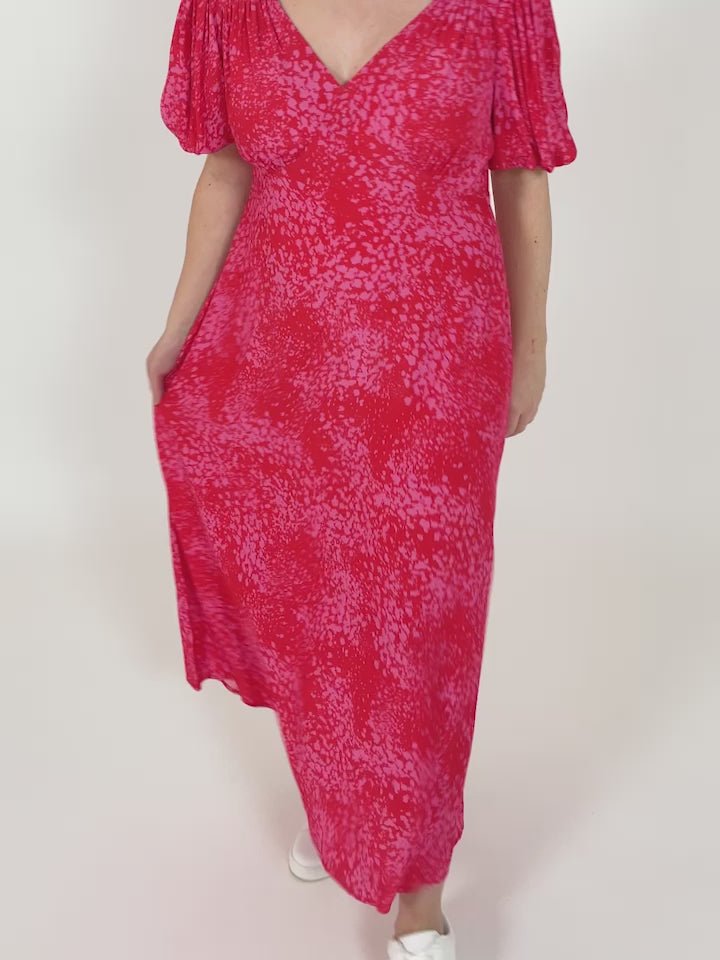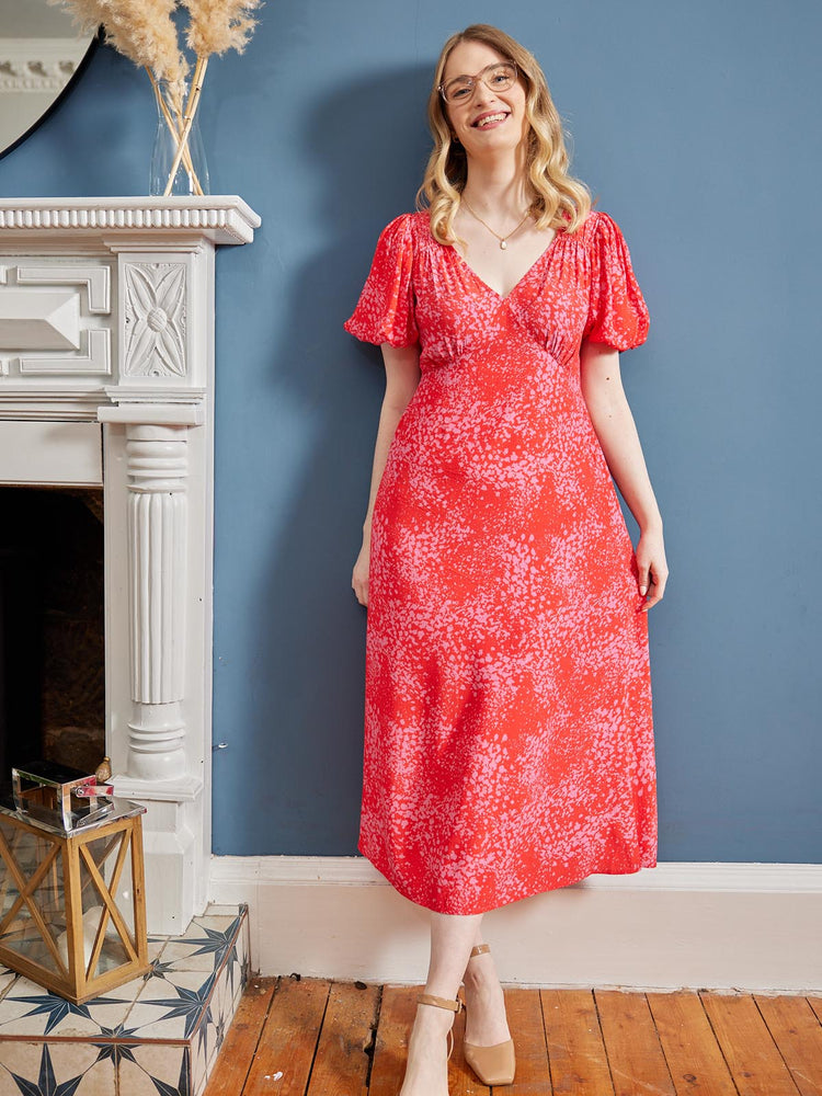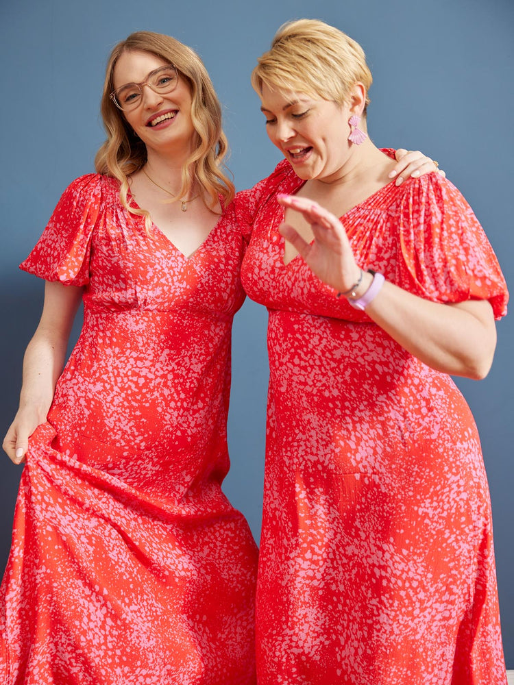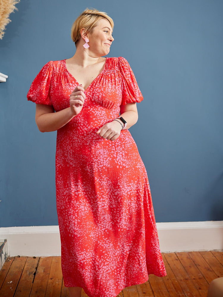 How does one sustainable dress pull all this off? The combination of the V-shaped neckline, puff sleeves, a shaped bust with subtle gathers and the easy-to-wear midi length - plus the red-hot pink print, which our community scored as their favourite ever from Unfolded!