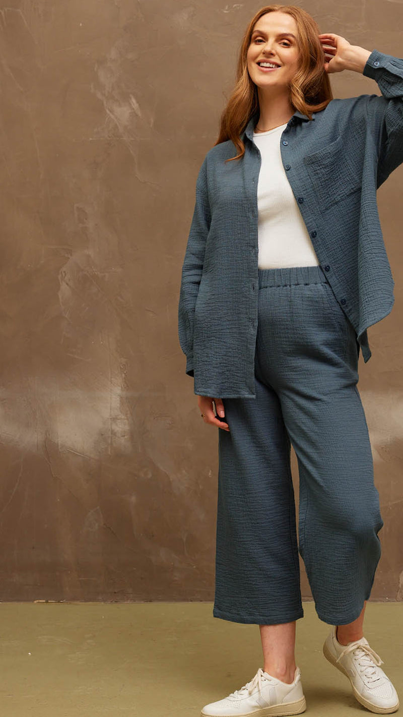 This bundle includes our Deborah shirt and Maisie culottes, both made using high-quality sustainable cotton crinkle fabric, perfect for the warmer months.