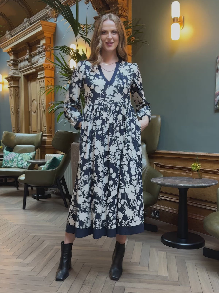 - Sarah, EdinburghBarbara - Notch Neck Dress - Navy Floral