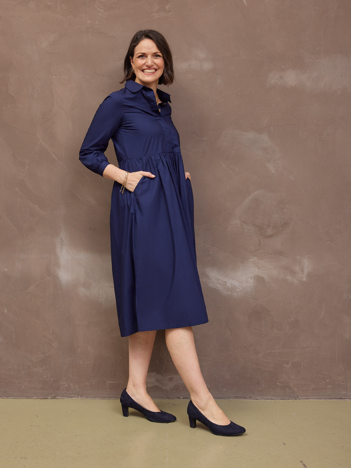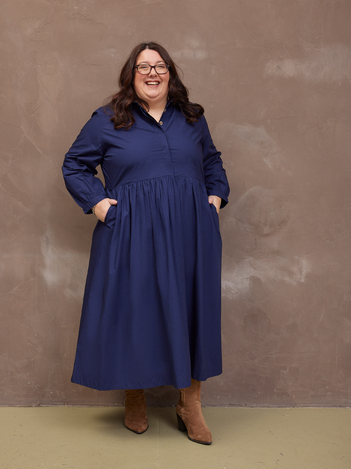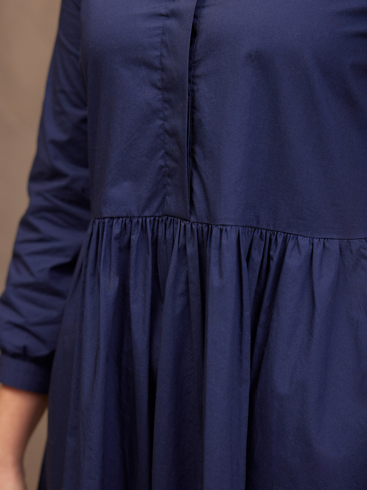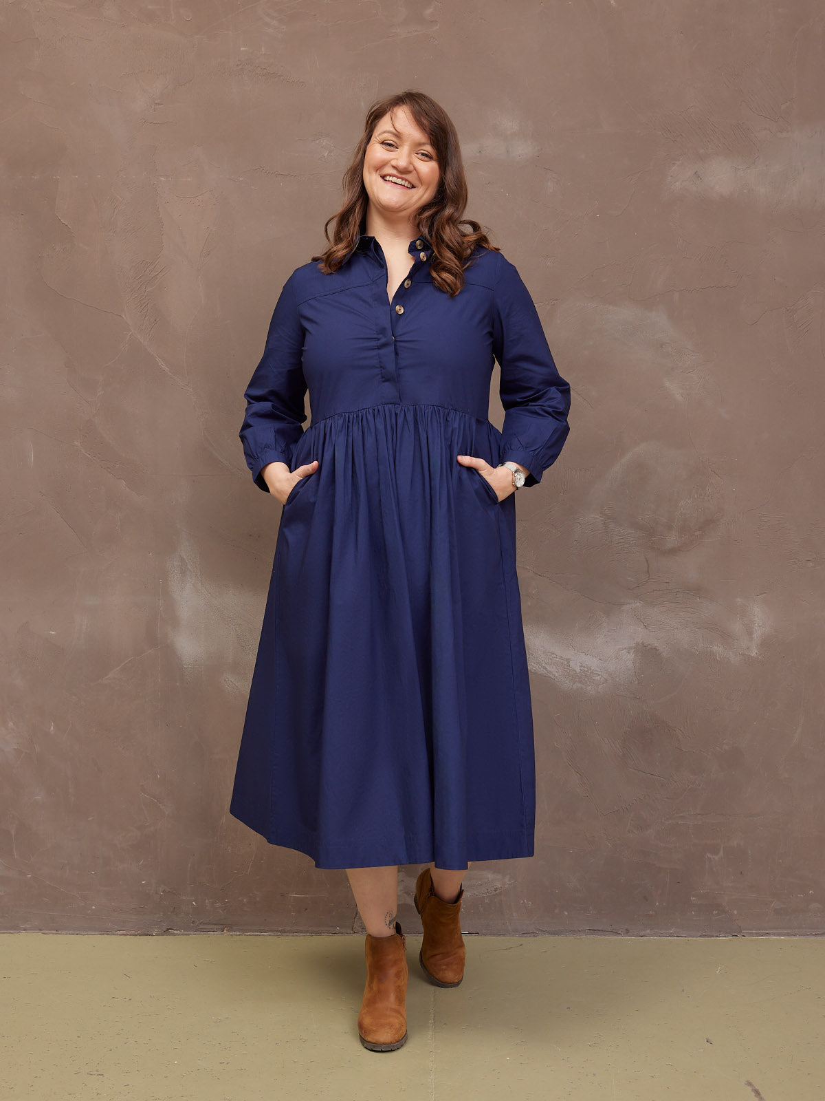 Based on our best-selling Daisie denim dress - Katrina is our new 100% cotton poplin version, a classically beautiful navy shirt dress featuring a shirt collar and full gathered skirt. The lovely rich navy colour, and the sustainable cotton poplin fabric makes this a super versatile shirt dress, perfect for the coming warmer months.