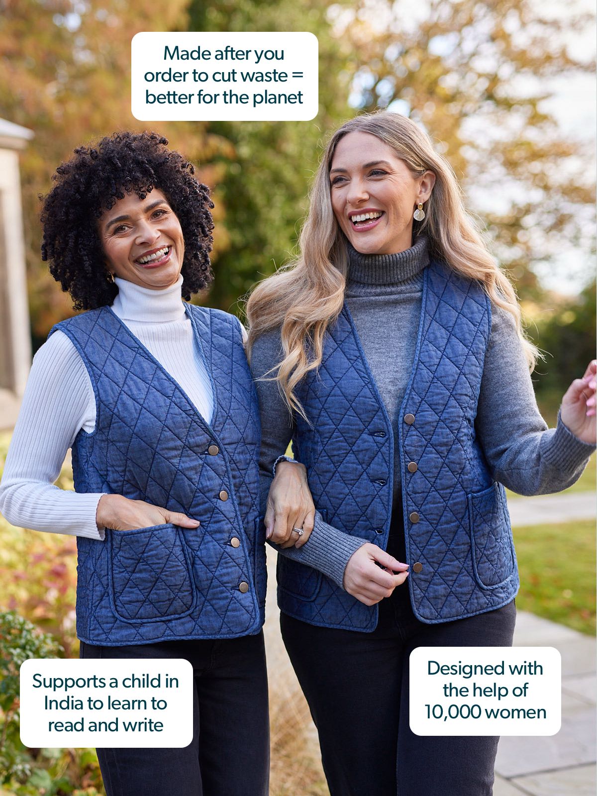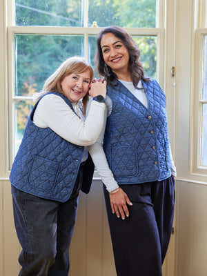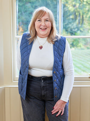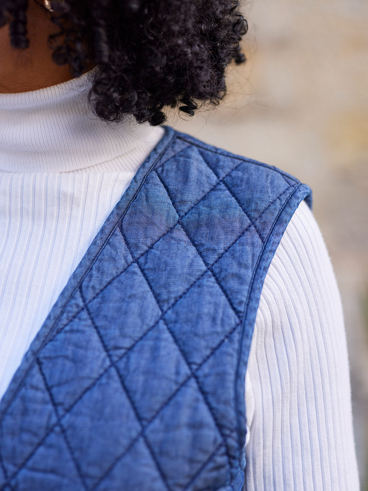 Introducing Eva, our very limited edition quilted vest! This sustainable denim quilted gilet is made from deadstock fabric, which is fabric left over from other production, which means the Eva is even better for the planet than our usual pieces - and only available in very limited numbers!