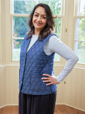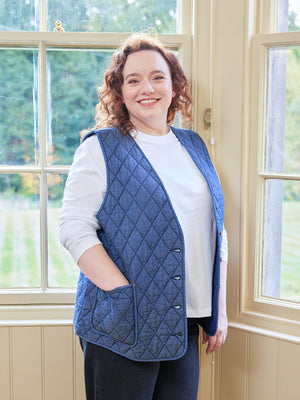 The versatile Eva quilted vest comes in 3 different designs; Denim, Stripe or Floral.