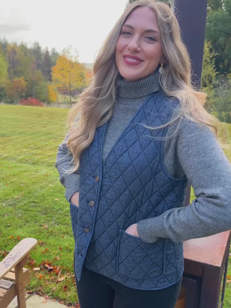 Introducing Eva, our very limited edition quilted gilet! This sustainable denim quilted gilet is made from deadstock fabric, which is fabric left over from other production, which means the Eva is even better for the planet than our usual pieces - and only available in very limited numbers!