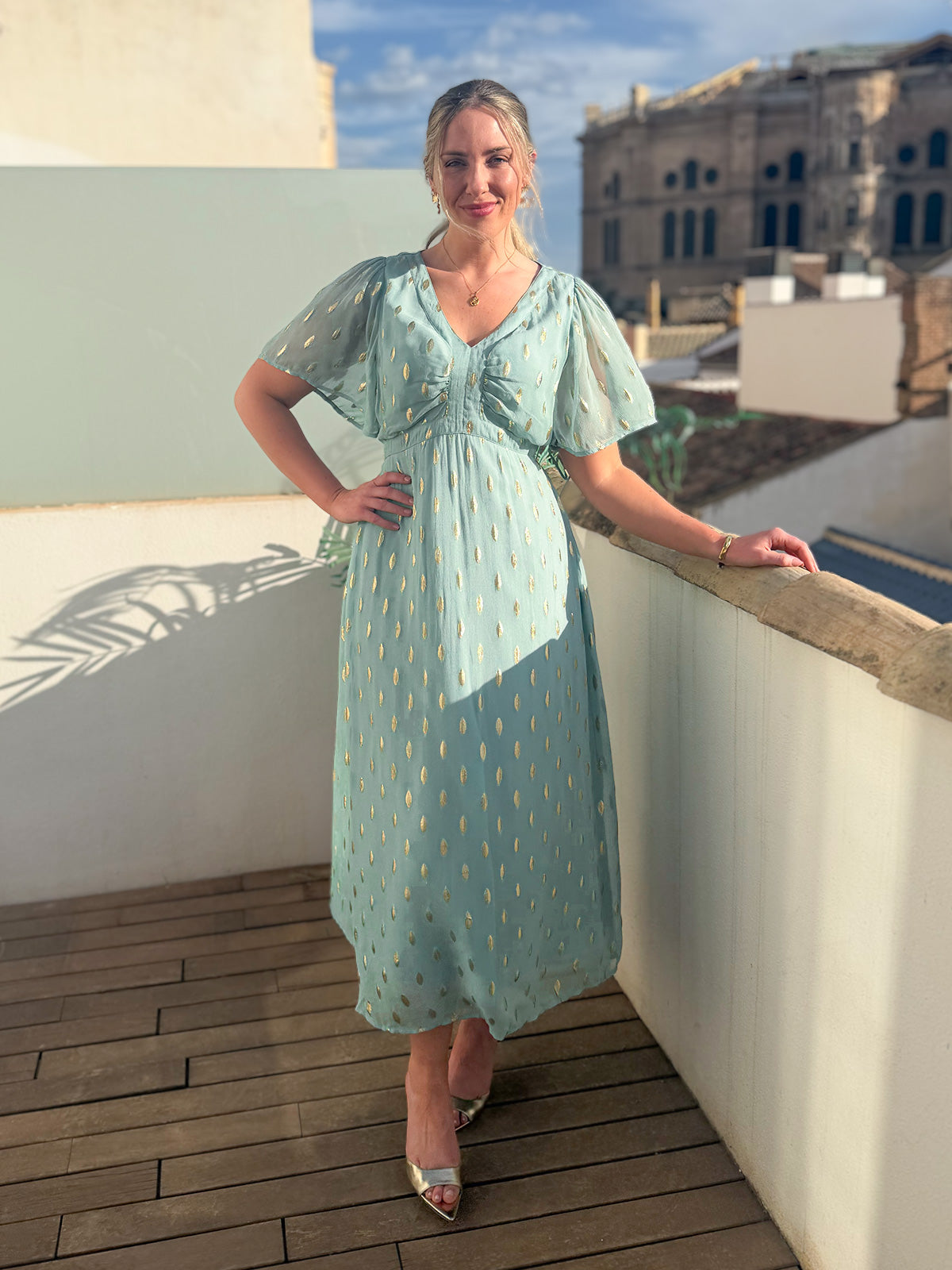 The new mint and gold colourway is absolutely stunning (if we do say so ourselves!). The mint green combined with gold lurex shimmer gives a fresh vibe with a touch of opulence, making this the perfect dress for special occasions. Helena would work absolutely perfectly at weddings, anniversary celebrations, summer parties or any event where you want to make a glamorous impression. Pair with gold heels and minimal jewellery and this dress will speak for itself!