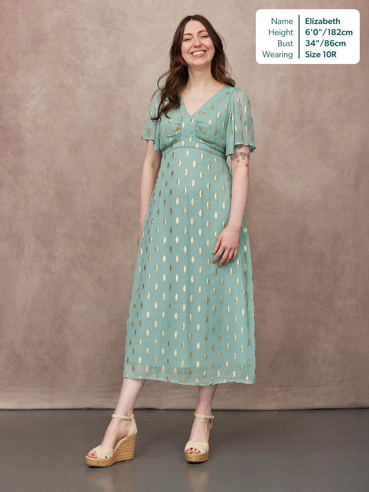 Made in a gorgeous sustainable viscose georgette fabric, Helena is lined in the body, which means it’s both comfortable and flattering to wear. The delicate semi-sheer sleeves add a touch of romance and elegance, while the rest of the dress is not see-through, thanks to the cotton voile lining. The flattering V-neck and beautifully designed shaping at the bust create a really refined and polished silhouette. Helena is a slightly longer length midaxi dress, which means it’s an elegant option for special occasions, with a gorgeous flowing quality that feels really luxurious.