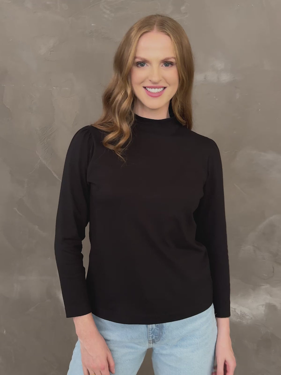 Polly - High Neck Jersey Top - Black