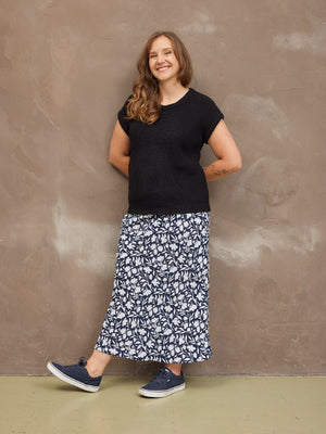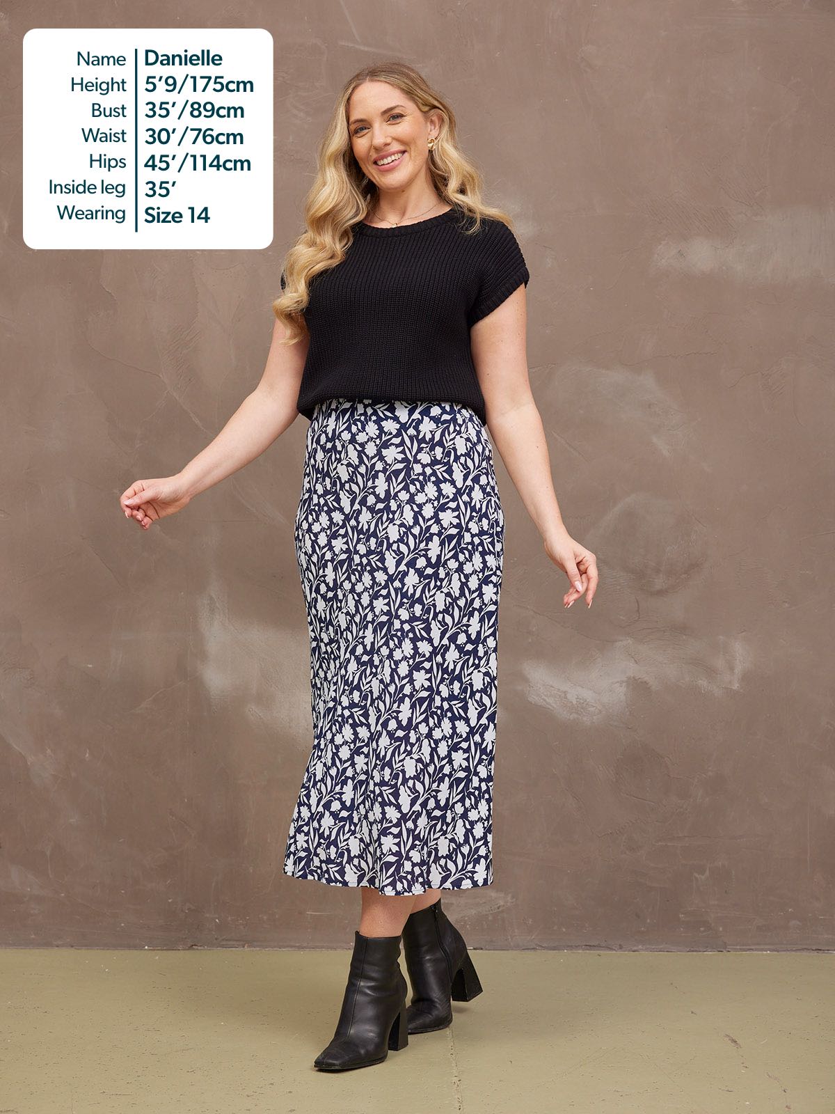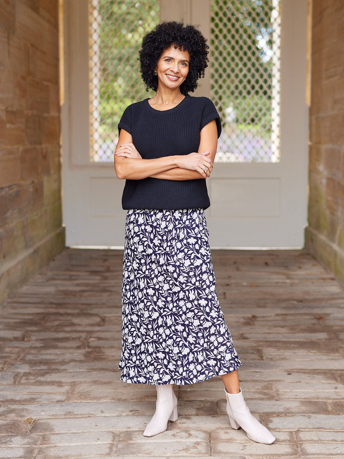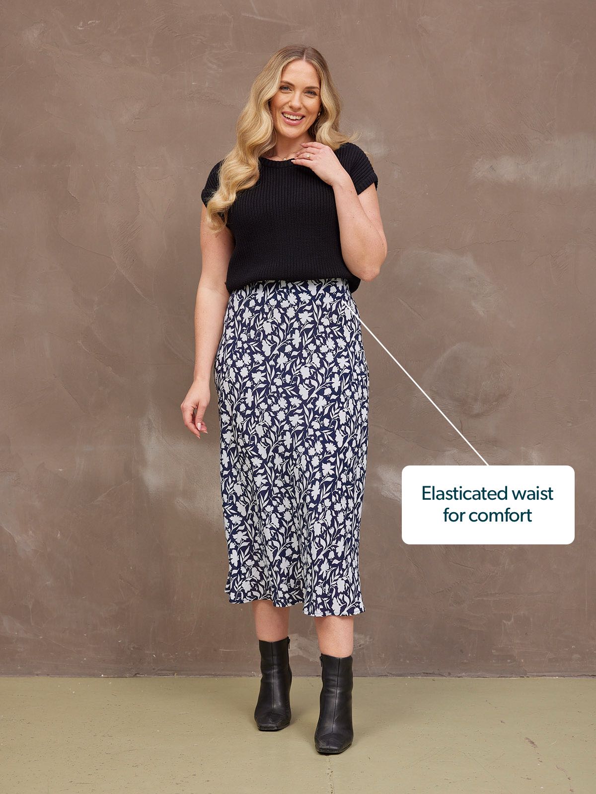 Isabelle is a beautiful new bias cut skirt launching this collection. Made in the same gorgeous deep navy and white shadow floral print as our Joanna dress, this skirt was voted for by over 10,000 of our fabulous customers who loved the easy pull on flattering style.