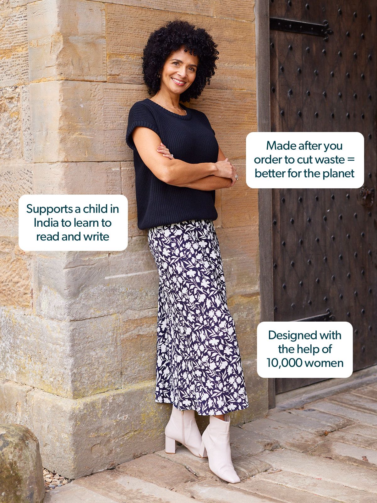 Ordering the Isabelle skirt will see you fund a child near our factories in India to learn to read and write for 2 months. A stunning skirt for you = a life changed for a child.