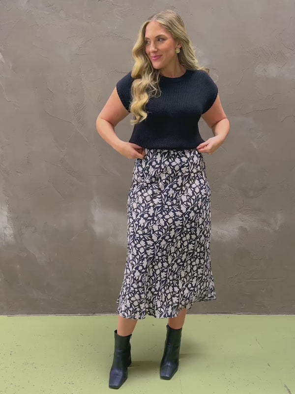 Isabelle Bias Cut Skirt - Monochrome Floral Print