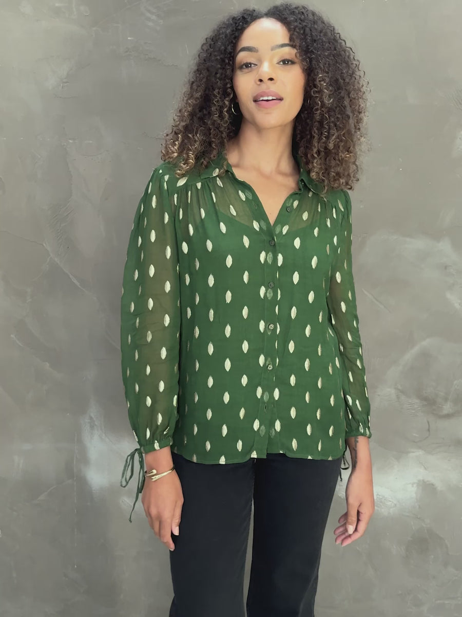 Our new Jamila Lurex blouse is the easiest way to inject a little sparkle into your wardrobe just in time for the party season. Made in a delicate sheer green georgette fabric with gold lurex pattern, this beautiful sheer blouse, with detachable cami feels way more expensive than it is.