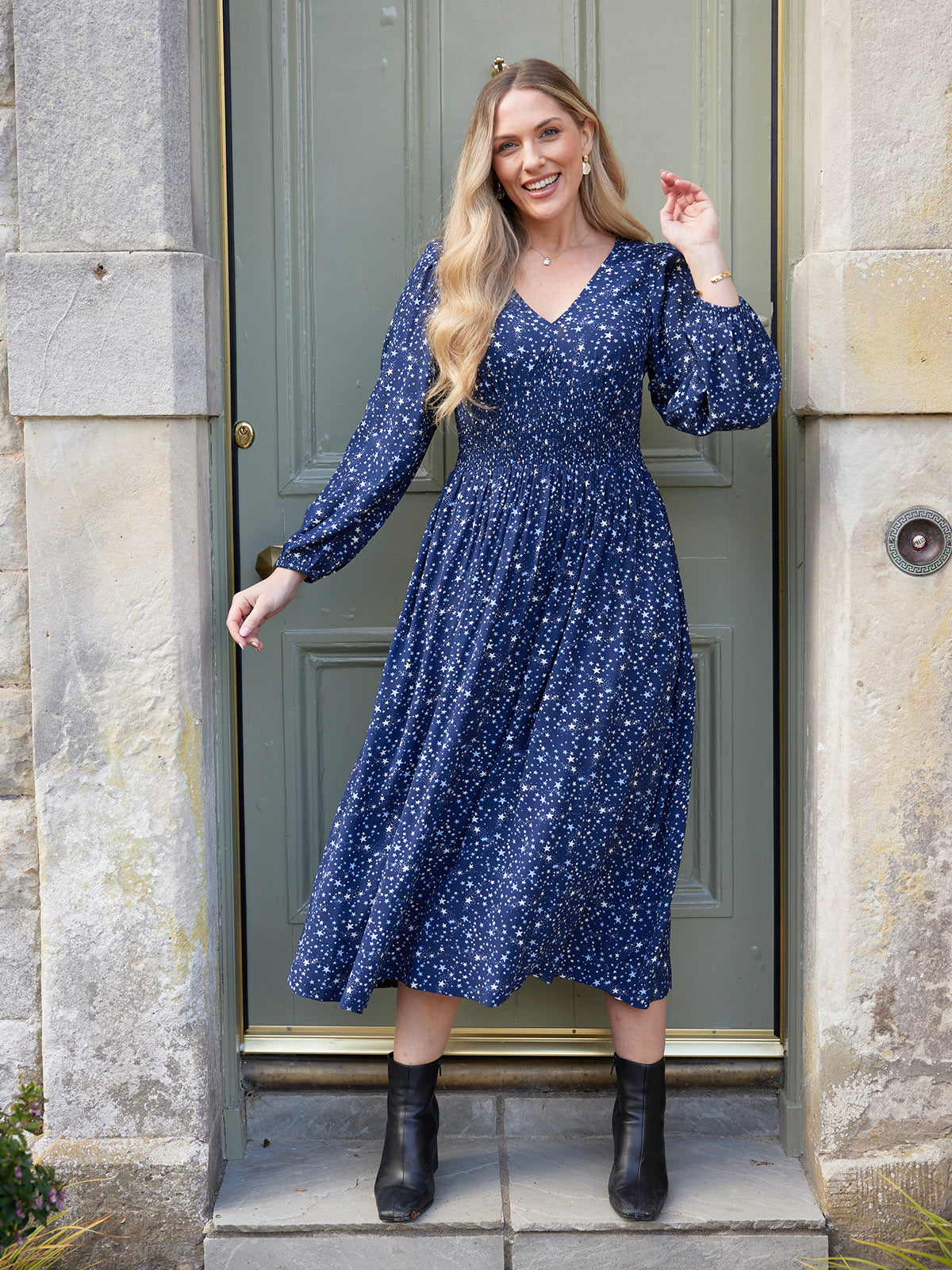 Maddie might just be the comfiest dress you’ll ever wear, whilst still looking great! Thousands of our customers have told us that she is their favourite dress ever and for this latest collection 10,000 of our customers have helped select 3 new colourways for this perfect dress - including this whimsical Navy Star Print.