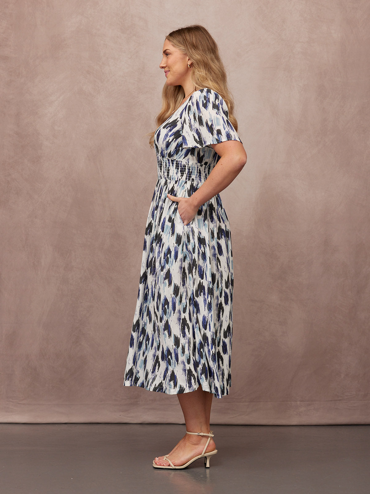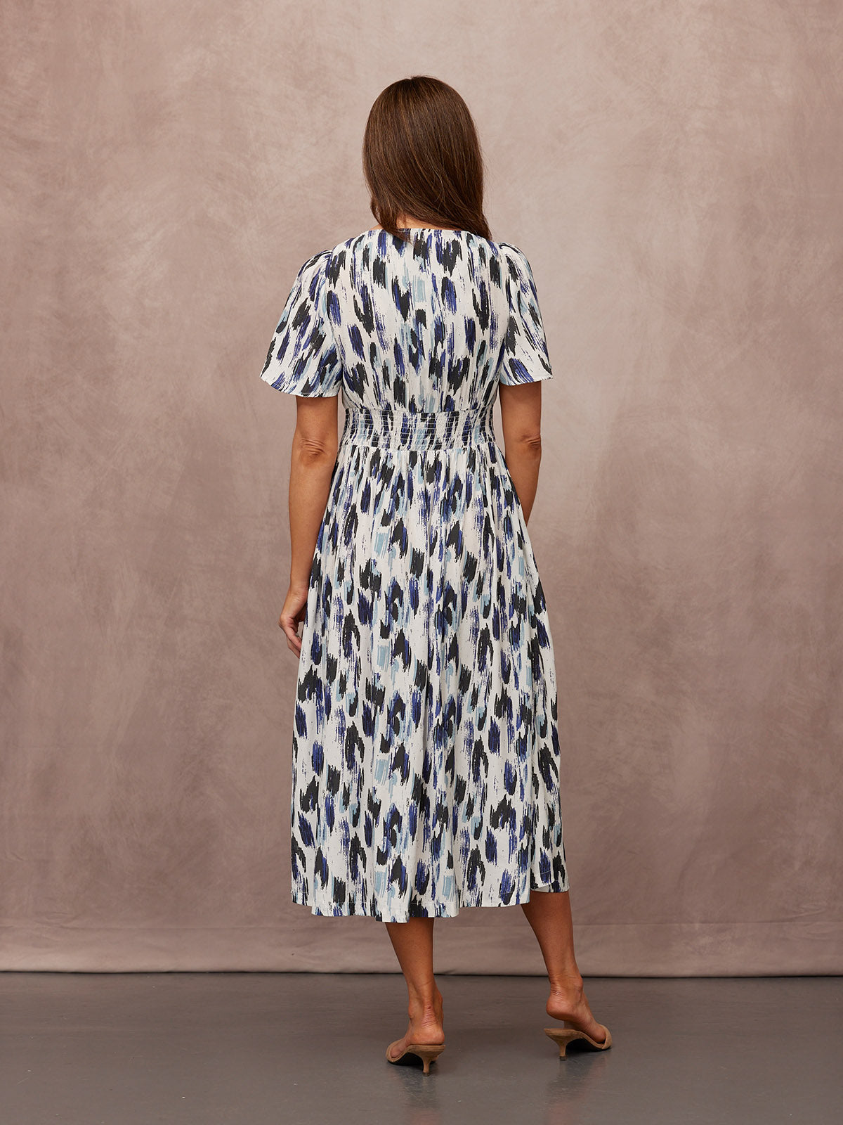 Maddie Short Sleeve Dress - Navy Ikat Print