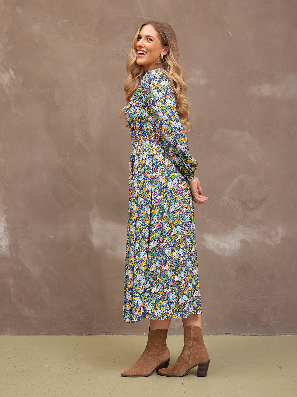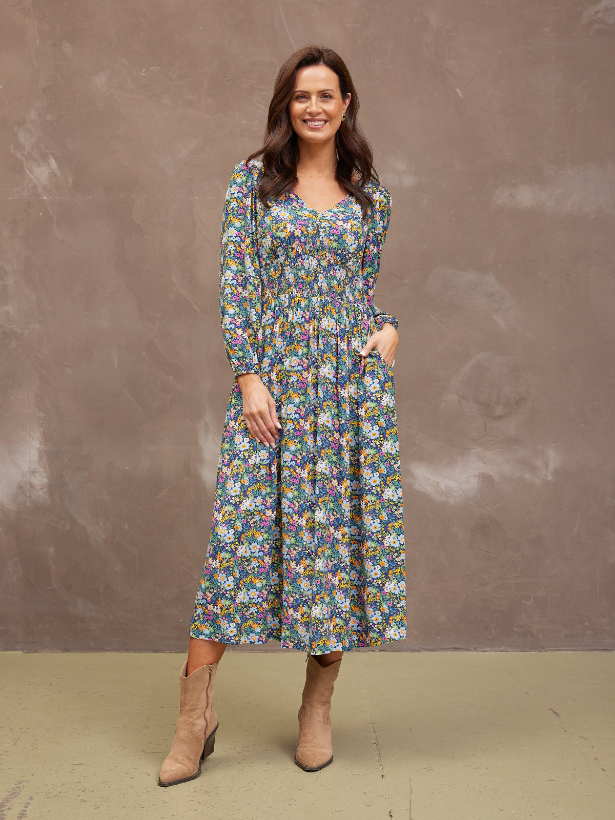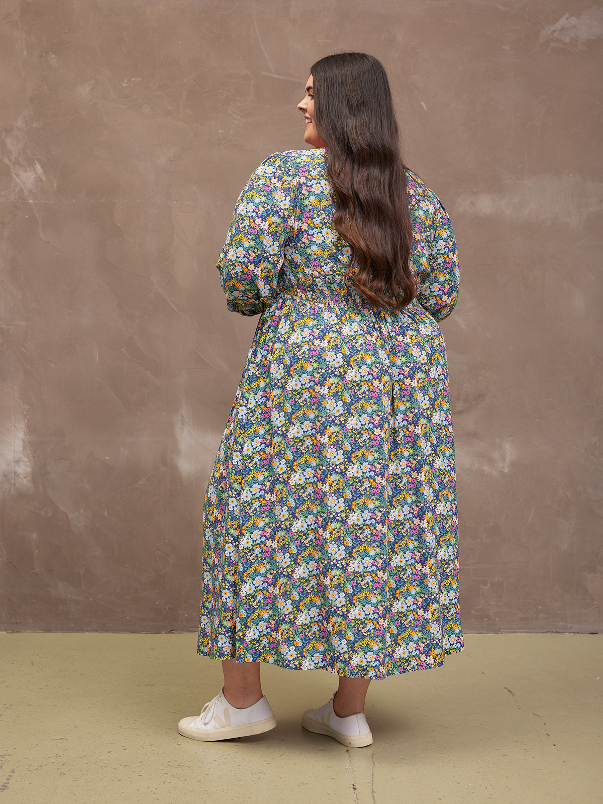 Our stunning new floral Maddie dress is made in a sustainable woven viscose crepe fabric, which is a beautiful, light, floaty and soft to touch material. Gorgeously versatile, this sustainable floral dress has elasticated cuffs, long blouson sleeves and of course, those all-important pockets. Maddie comes in two lengths, so you can get the fit that's right for you.