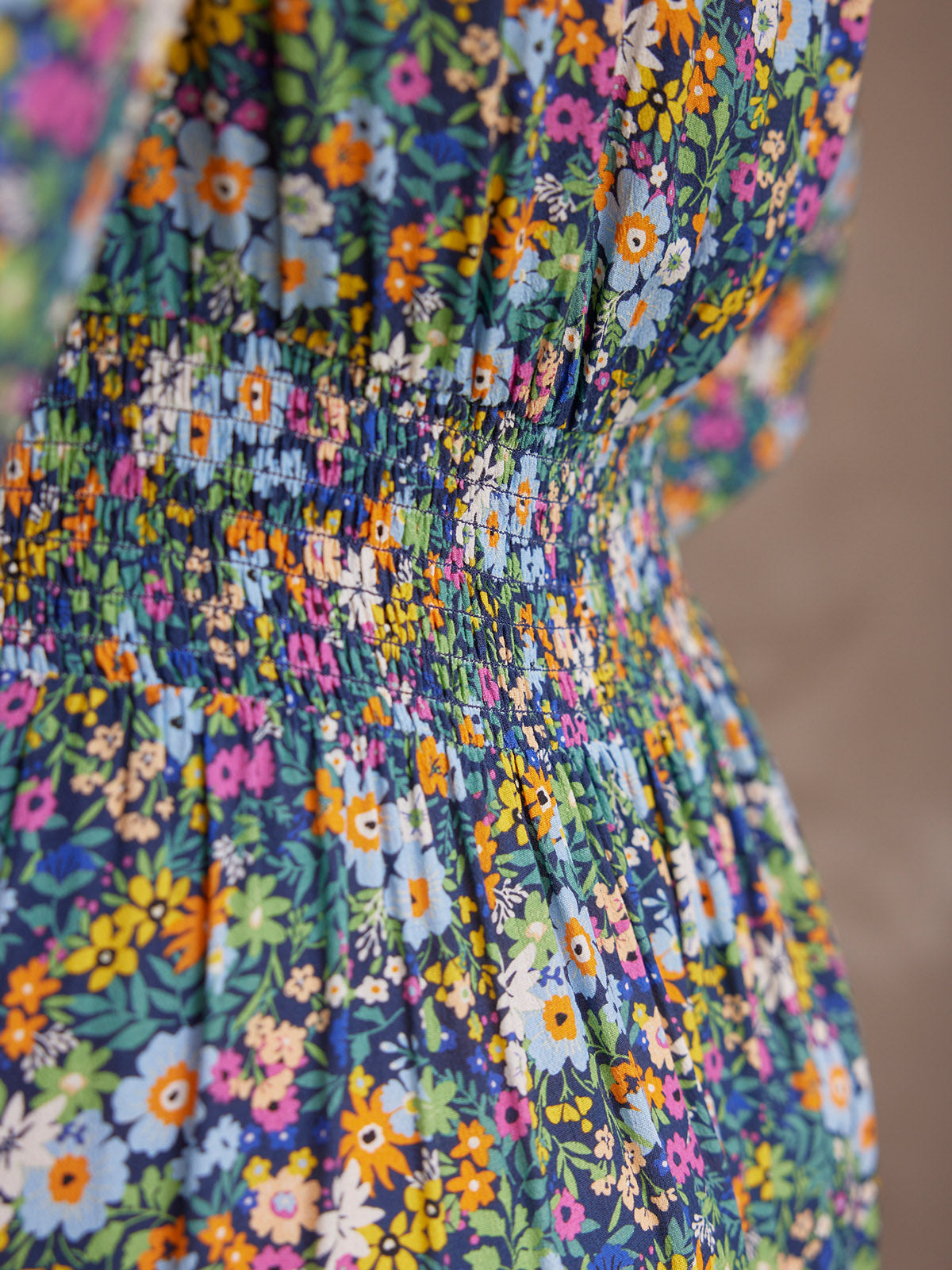 The eye-catching multi-coloured floral print features a mass of ditsy flowers on a navy background - equally well worn with darker tights and boots for the cold winter months as with a pair of crisp white trainers for a relaxed bare-legged look when the weather gets warmer. The Maddie dress also works just as well smartened up for a day in the office, as dressed down for a day relaxing at home.