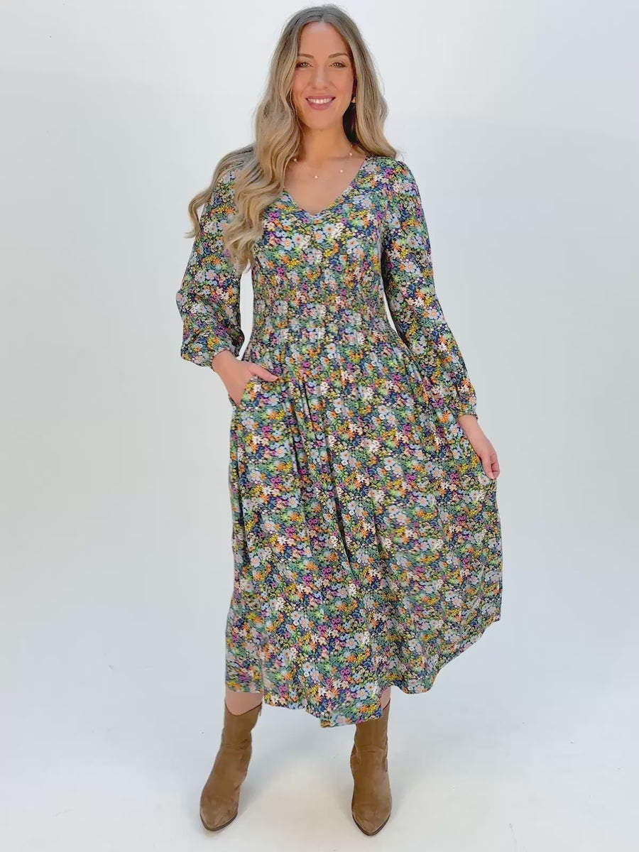 Maddie V-Neck Dress - Multi Coloured Floral