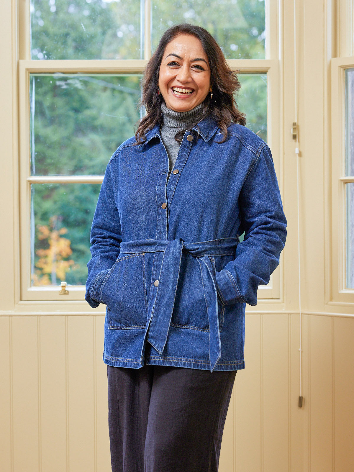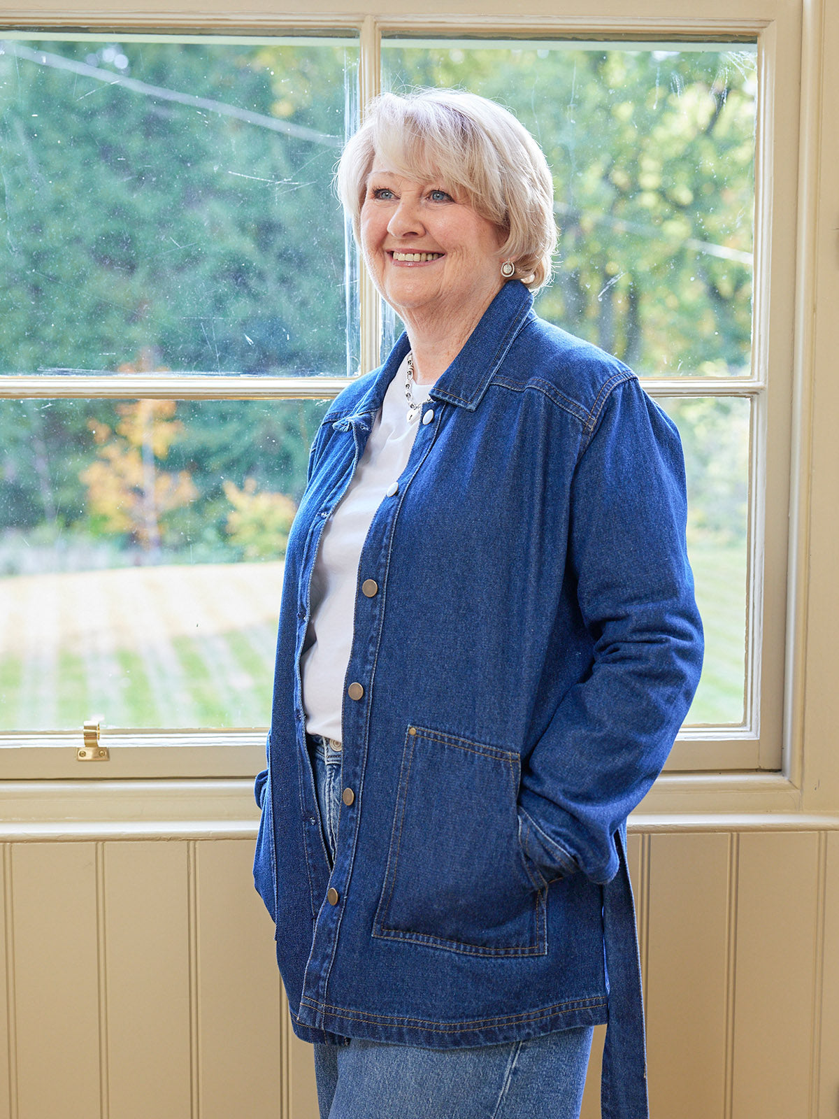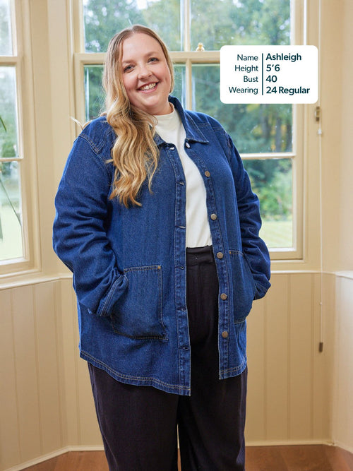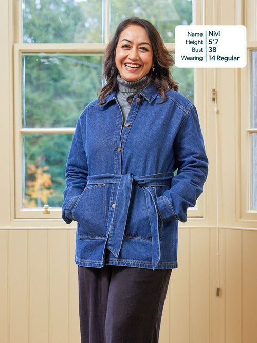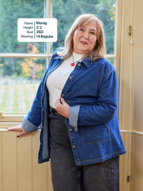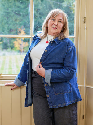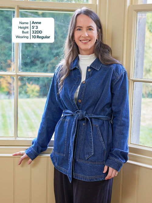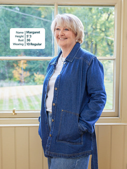 With a relaxed, easy fit, large patch pockets and deep cuffs, this jacket has a stylish 70s aesthetic which works perfectly worn over both wide and fitted trousers, or paired with a skirt. If you want a co-ordinated look, the Margaret denim jacket matches perfectly with the Anne denim dress - which is made in a more lightweight version of the same fabric.
