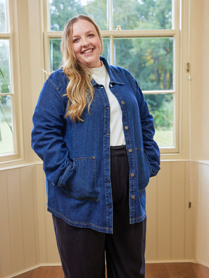 Margaret is a denim jacket unlike any other. Yes, she is made in super versatile, soft blue denim, but that’s where the similarities with classic denim jackets end.