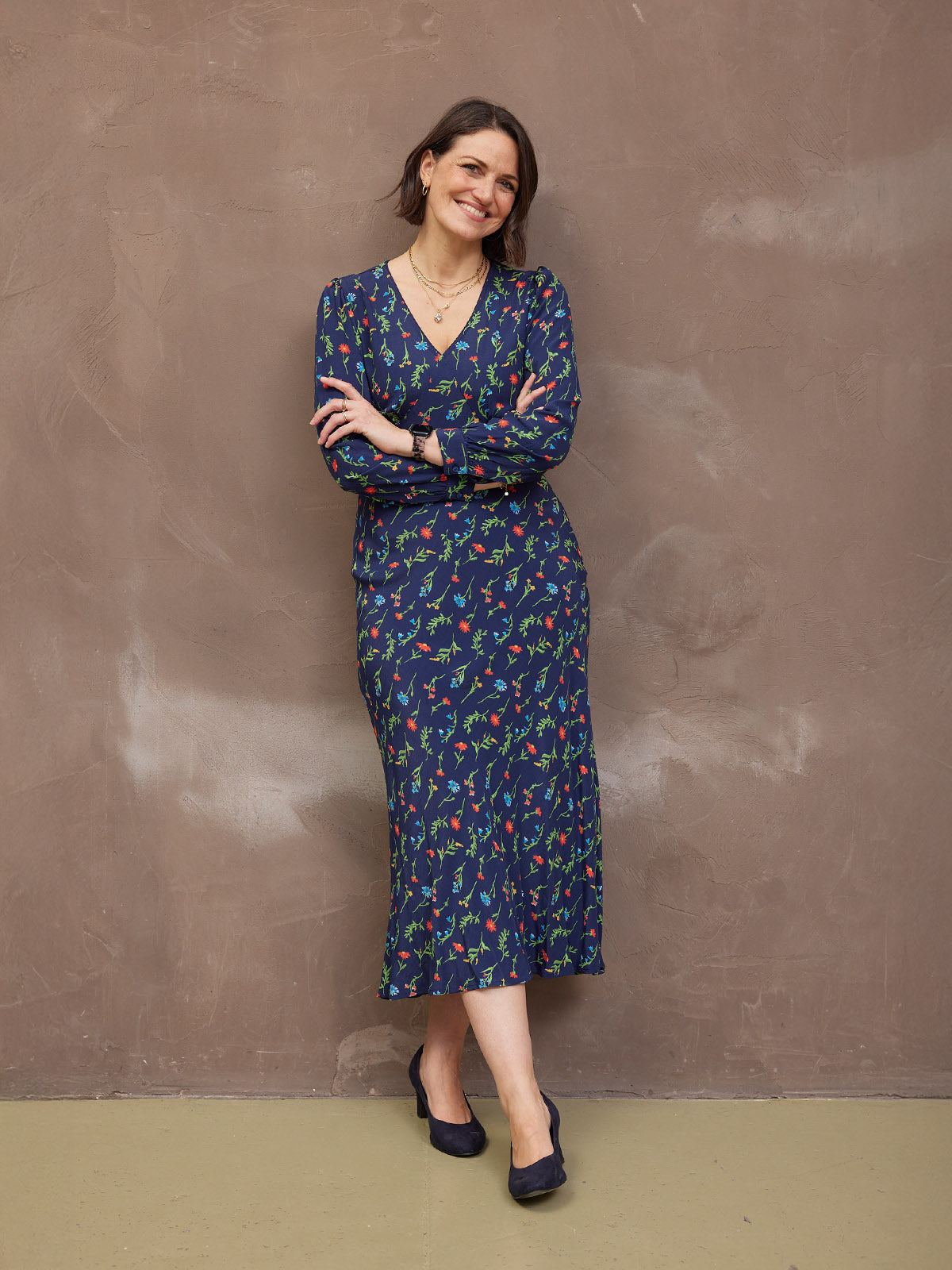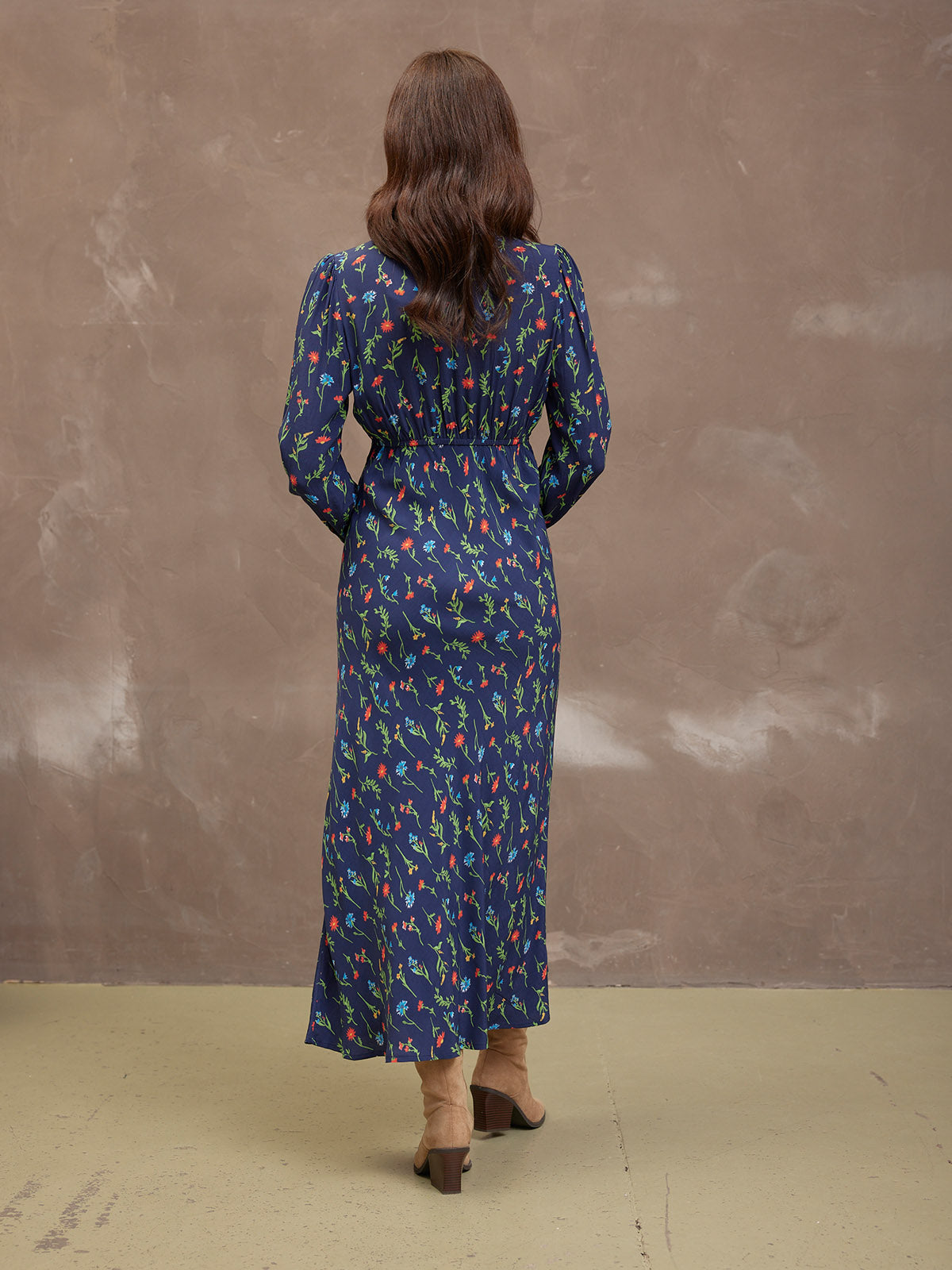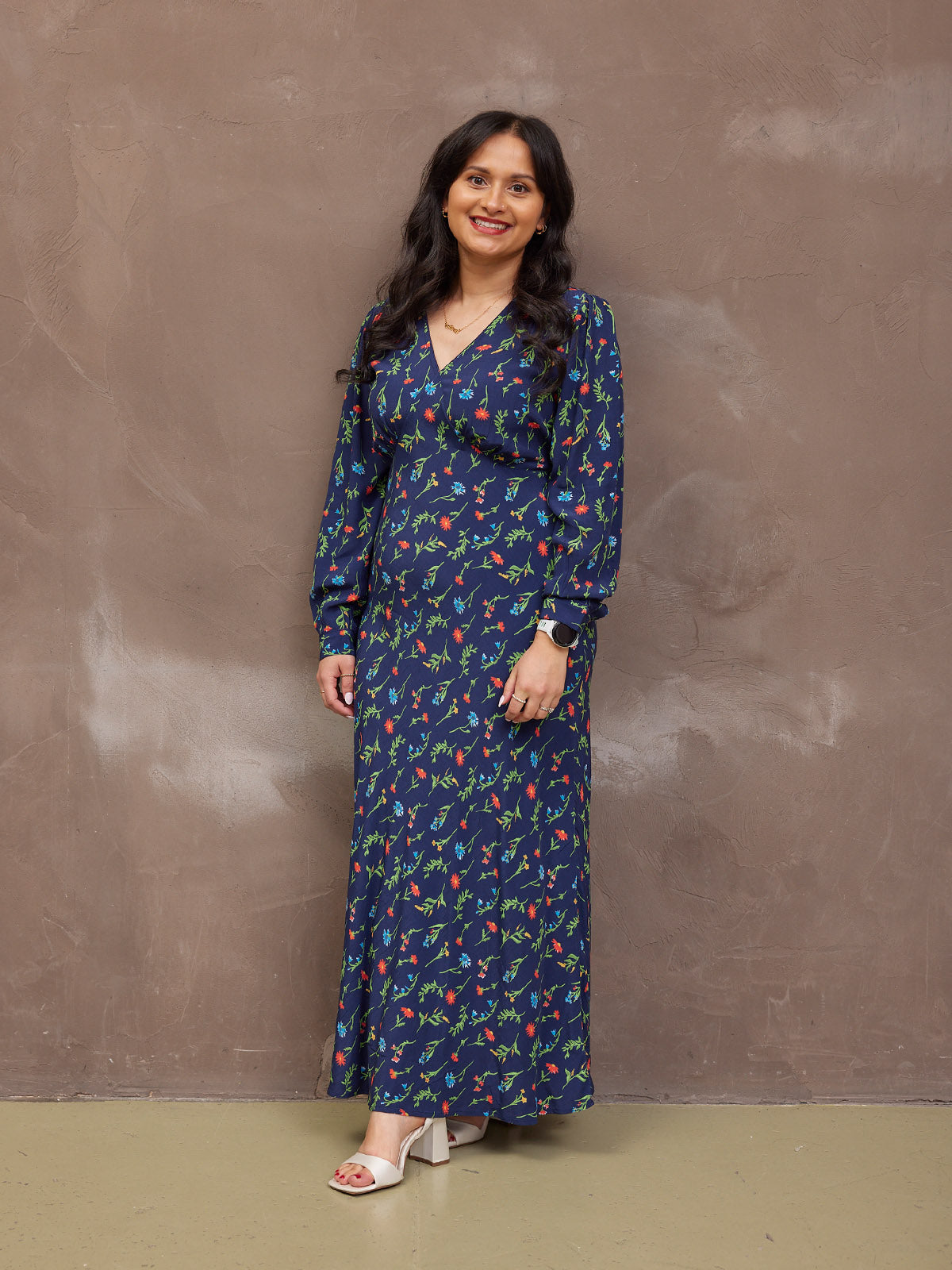 The gorgeous floral print is the same as our best-selling black floral Maddie dress, just updated with a navy background. Made in 100% sustainable viscose fabric, this dress is beautifully lightweight without being see-through. With a flattering bias cut shape, it benefits from under-bust shaping that carries onto a narrow elasticated band across the back. This ensures there is none of that annoying back material bunching, which you can sometimes get on bias-cut dresses.
