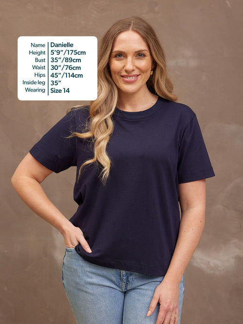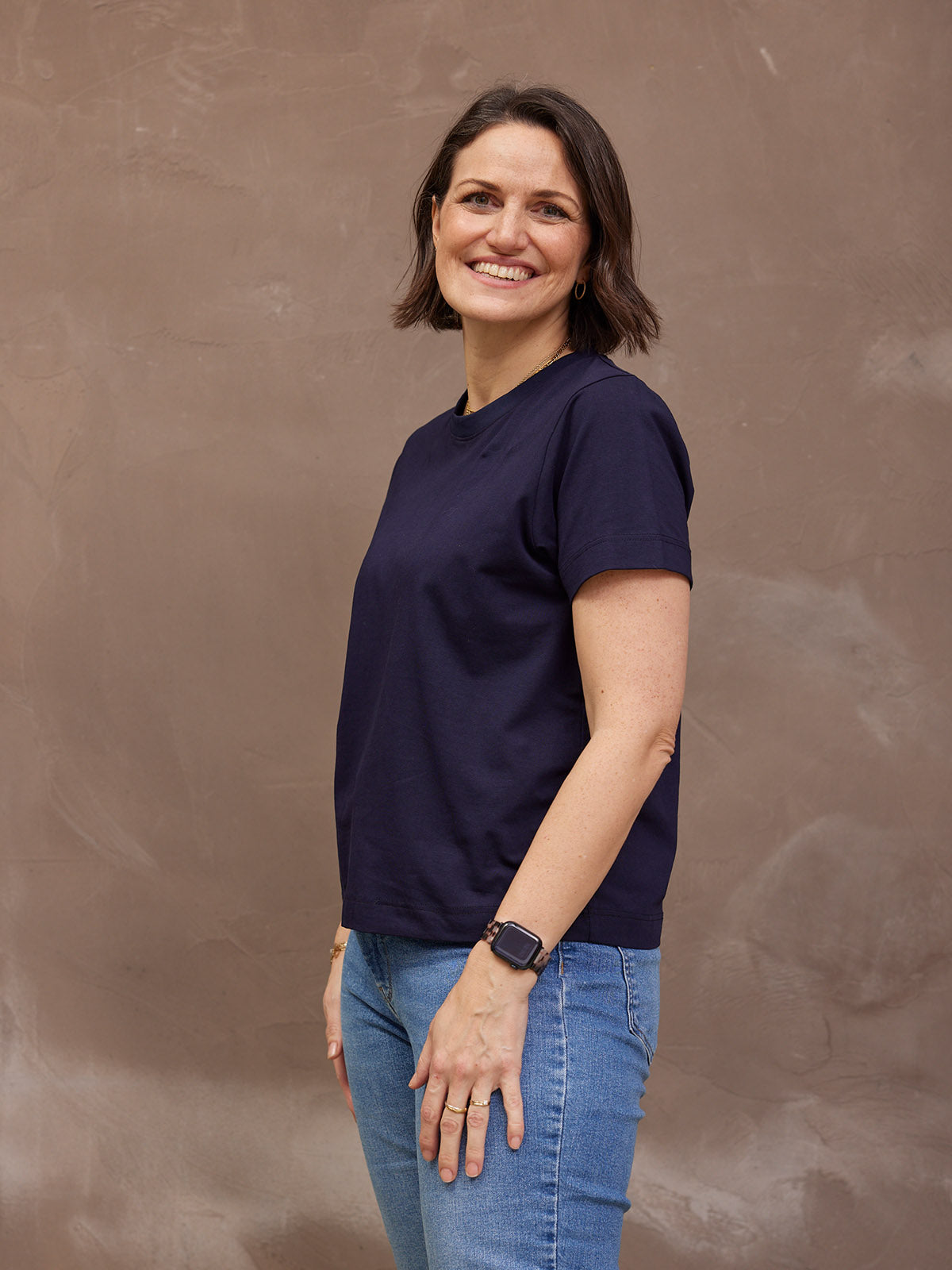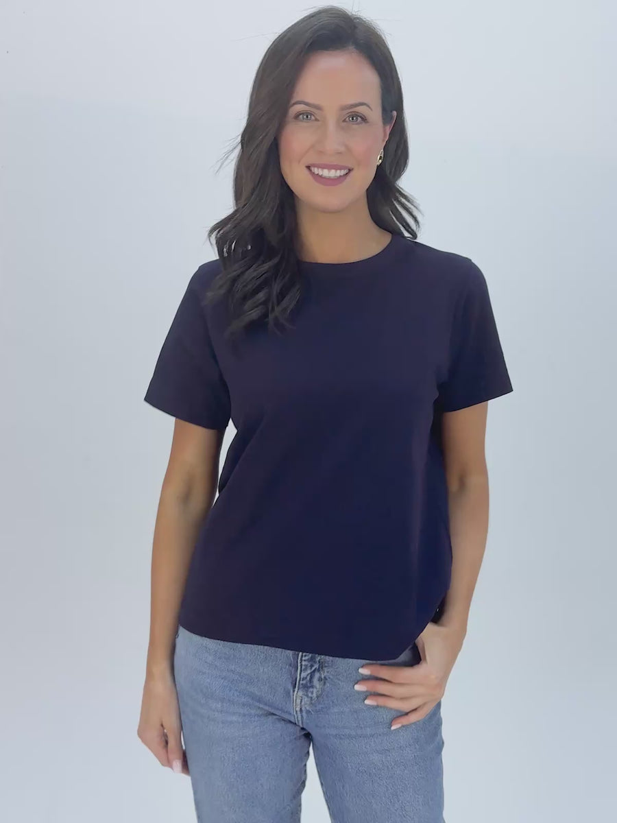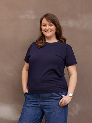 The Adele has a relaxed shape, a drop shoulder, round neckline and a stitch detail down the back which really elevates the style. It is available in navy and white - both will become new favourites in your T-shirt drawer!