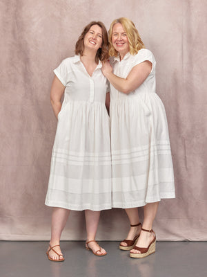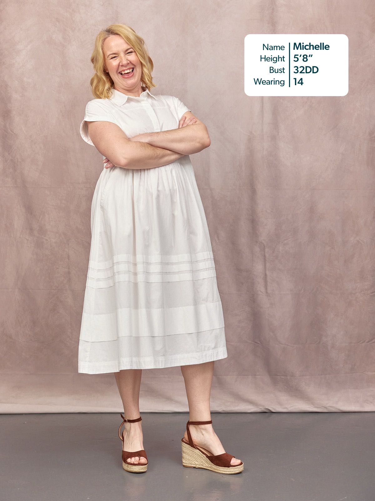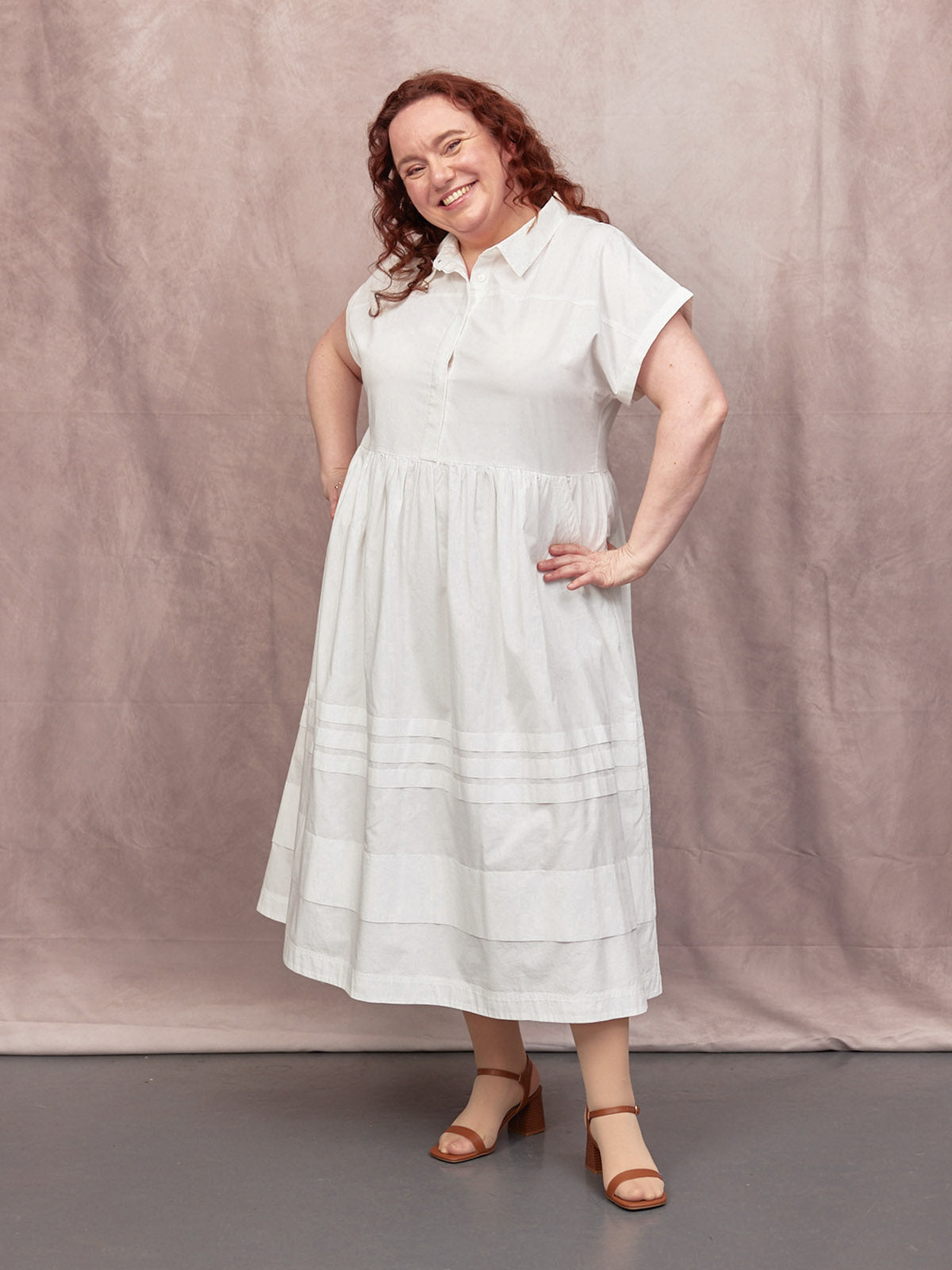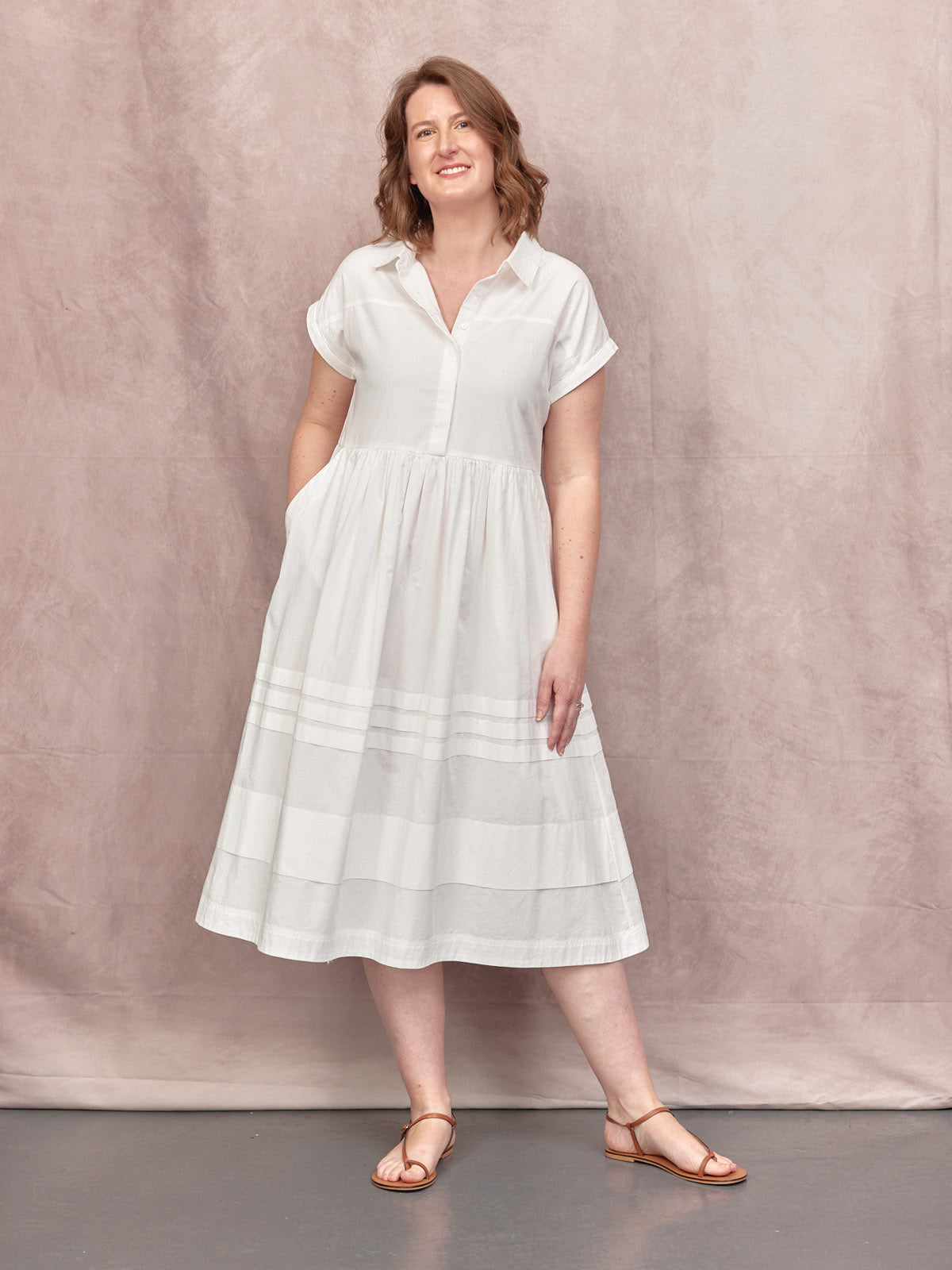 Much like the LBD, the little black dress - everyone should own a LWD; a little white dress! We’ve just introduced the perfect white tuck detail shirt dress, based on our best-selling cap-sleeved Rhiona denim dress.