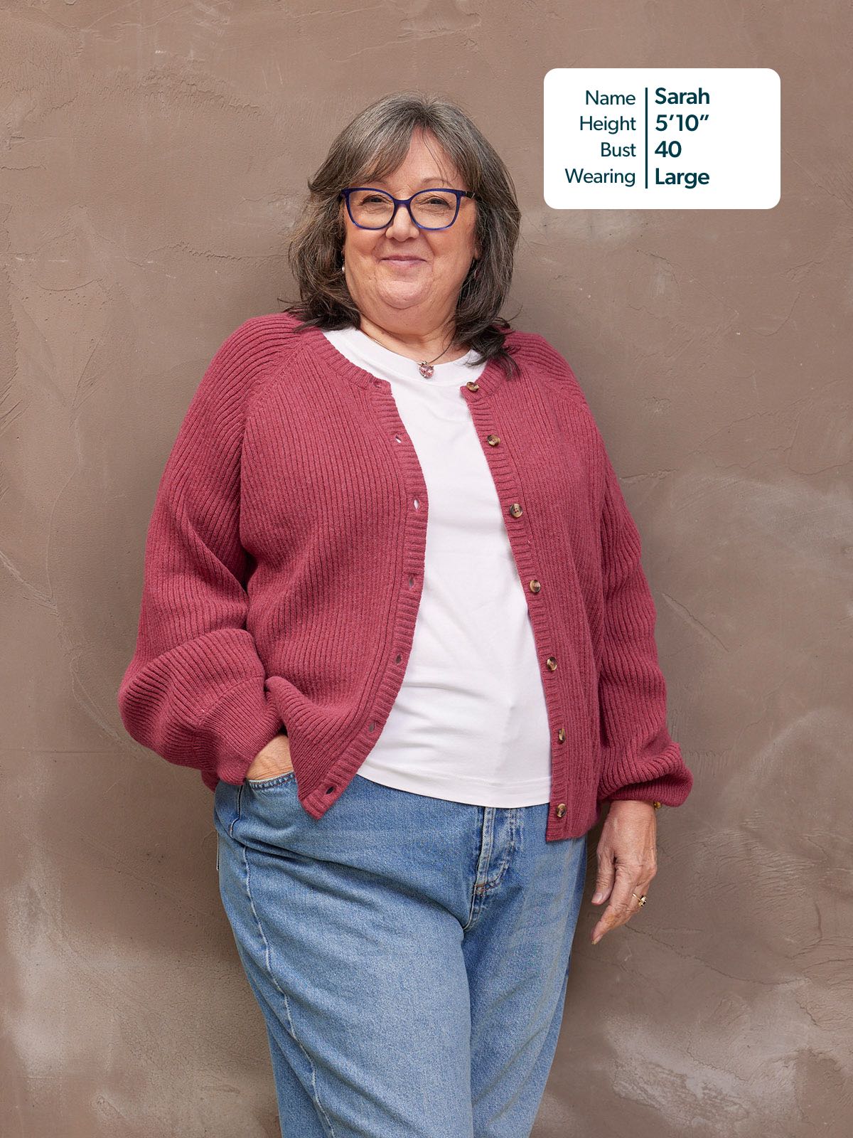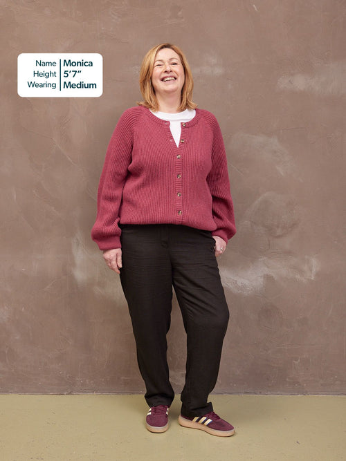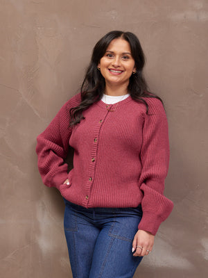 The rich raspberry tone adds a little pop to everyday outfits, while the classic button-through shape keeps it endlessly wearable - over tees, dresses, jumpsuits, or thrown around your shoulders when the temperature dips. It’s relaxed, flattering and properly comfortable -the kind you forget you’re wearing until someone asks where it’s from!