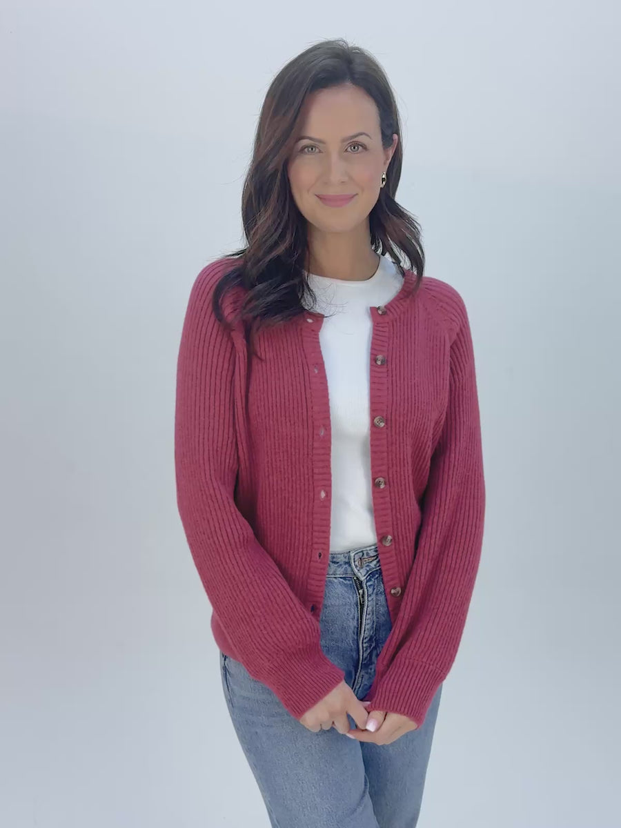 Margot Lambswool Rib Cardigan - Raspberry Pink