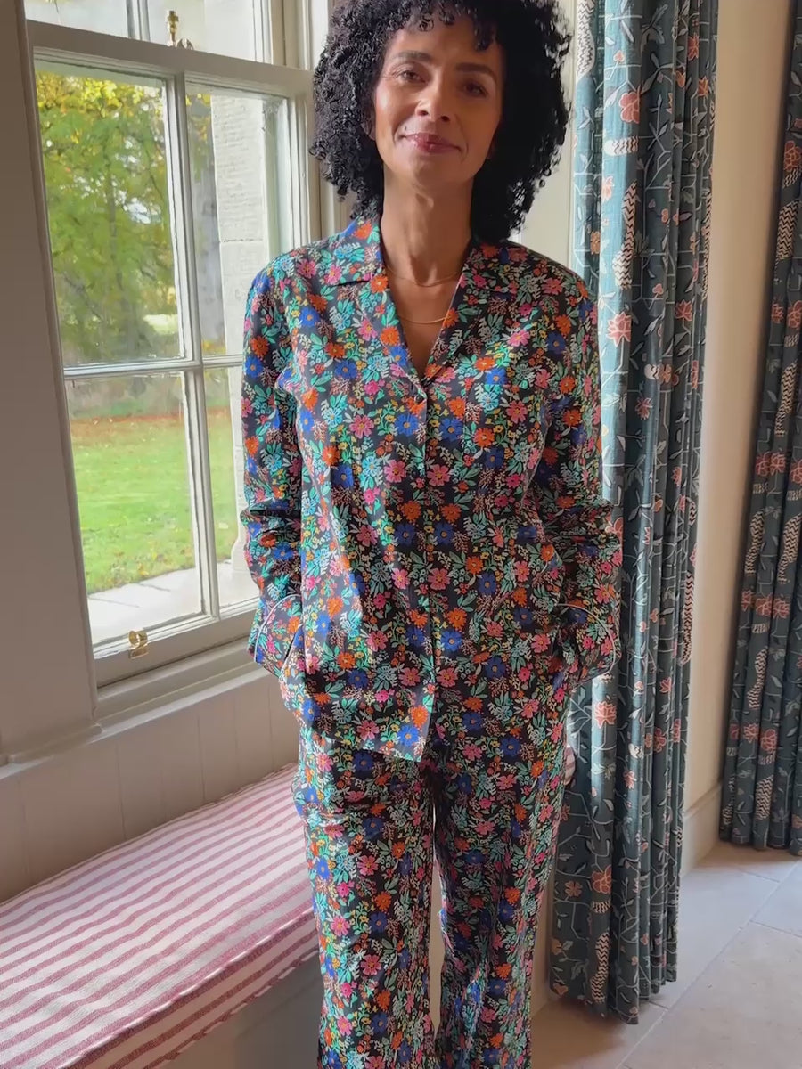 Sustainable pyjamas? Yes please! Everyone should have a set of pyjamas that brings a smile to their face on these cold winter nights, and our new Rosie Black Floral PJs are sure to do just that. The new vibrant floral print was selected by 10,000 of our amazing customers and with its black background and bold floral pattern it’s a gorgeous modern take on classic 1970s florals.
