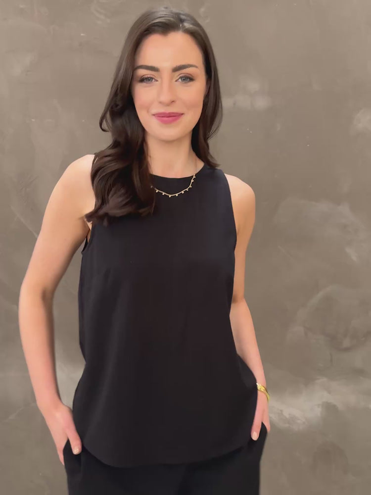 Meet our Ruby tank top in Black. This stunning top is made of sustainable cotton flax blend fabric and has been designed to be worn with the matching Rhianna cropped trousers, although if we are honest a top this cute can be worn with anything!