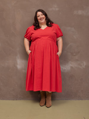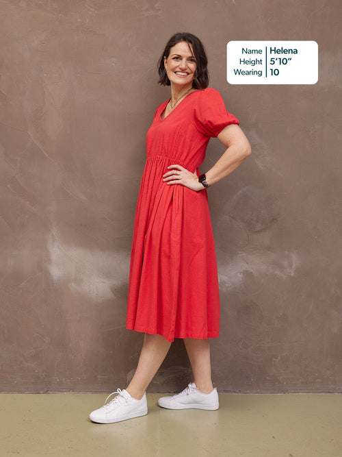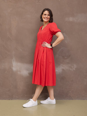 The Marilyn dress in vibrant red colour is one of those dresses that makes you feel good no matter where or how you wear it. And so you should! Because not only does it look good, but it is doing good too, improving the livelihoods of the workers who made it and funding local children in India in education.