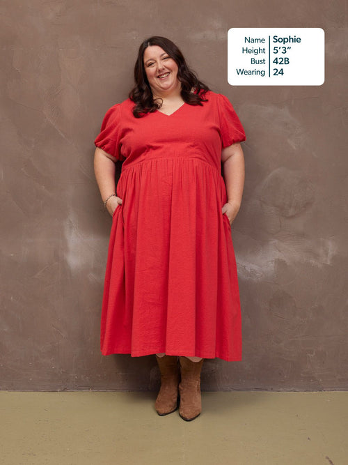 Marilyn can be dressed up with jewellery and heels but works just as well paired down with flat sandals or trainers and comes in a flattering midaxi length.