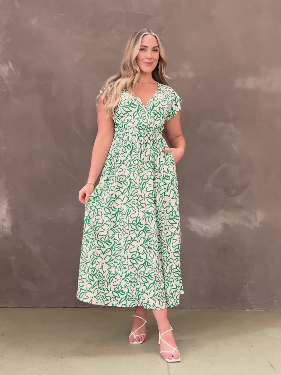 Susan is one of those easy breezy dresses that is made for relaxed summer days. Susan’s perfect maxi dress shape and stunning white and green linear leaf print was voted for by over 8000 customers - selecting it as their second favourite combination in this collection.