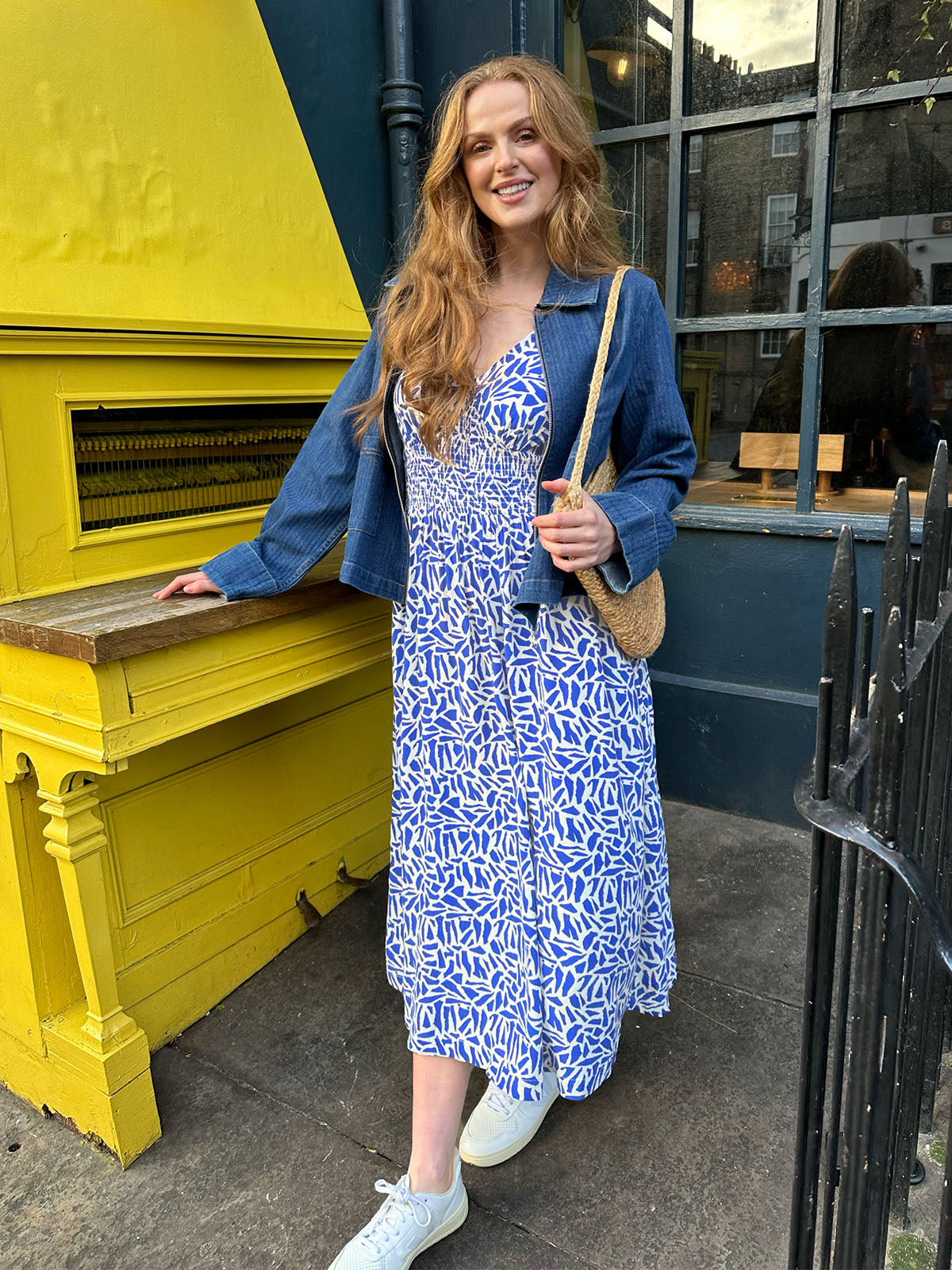 We love our short-sleeved terrazzo print Maddie worn with a pair of crisp white trainers for an easy breezy look, but this sustainable dress looks equally good smartened up for a day in the office with a navy blazer and navy shoes.