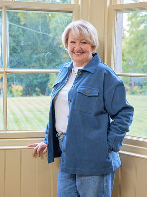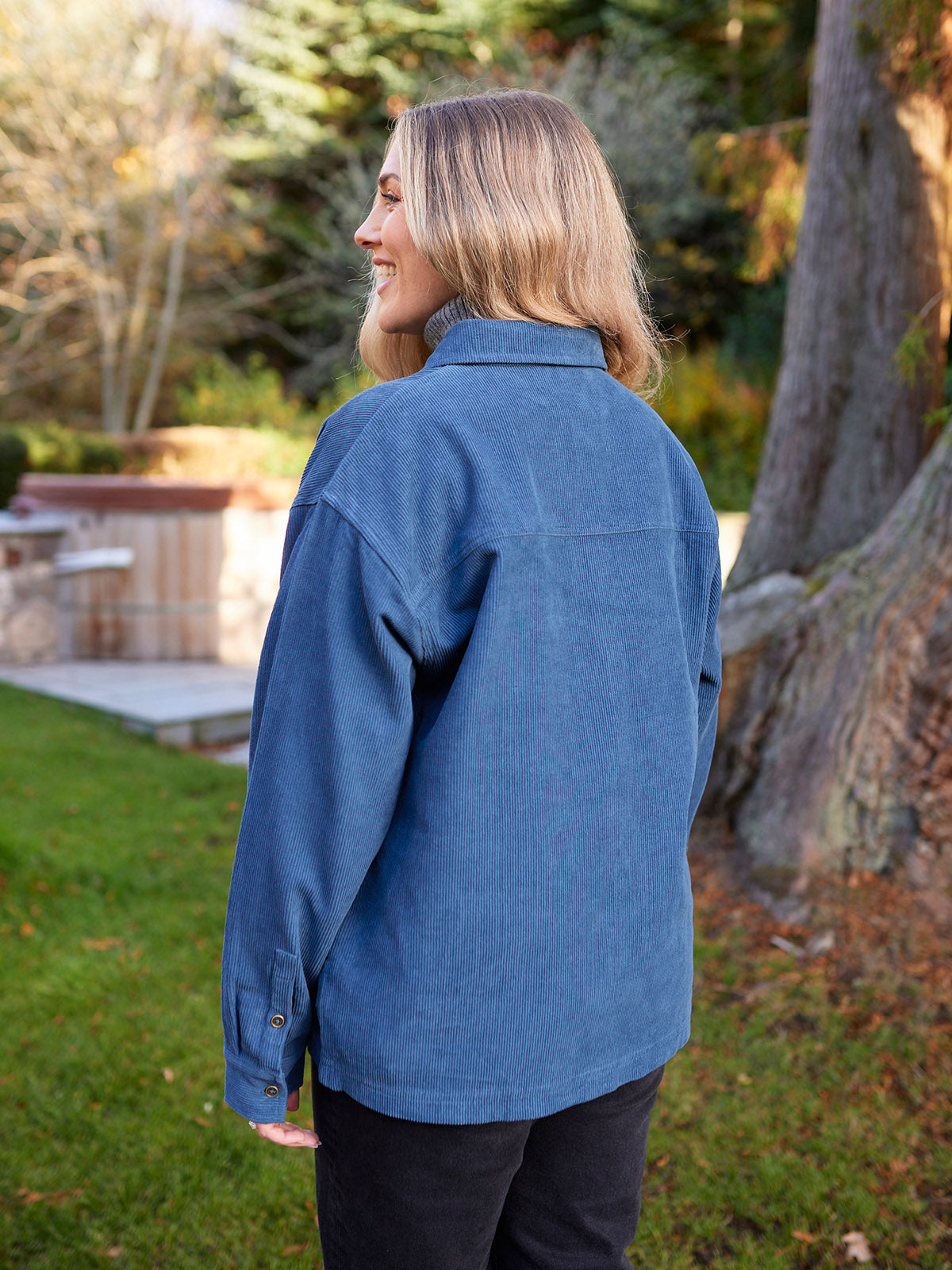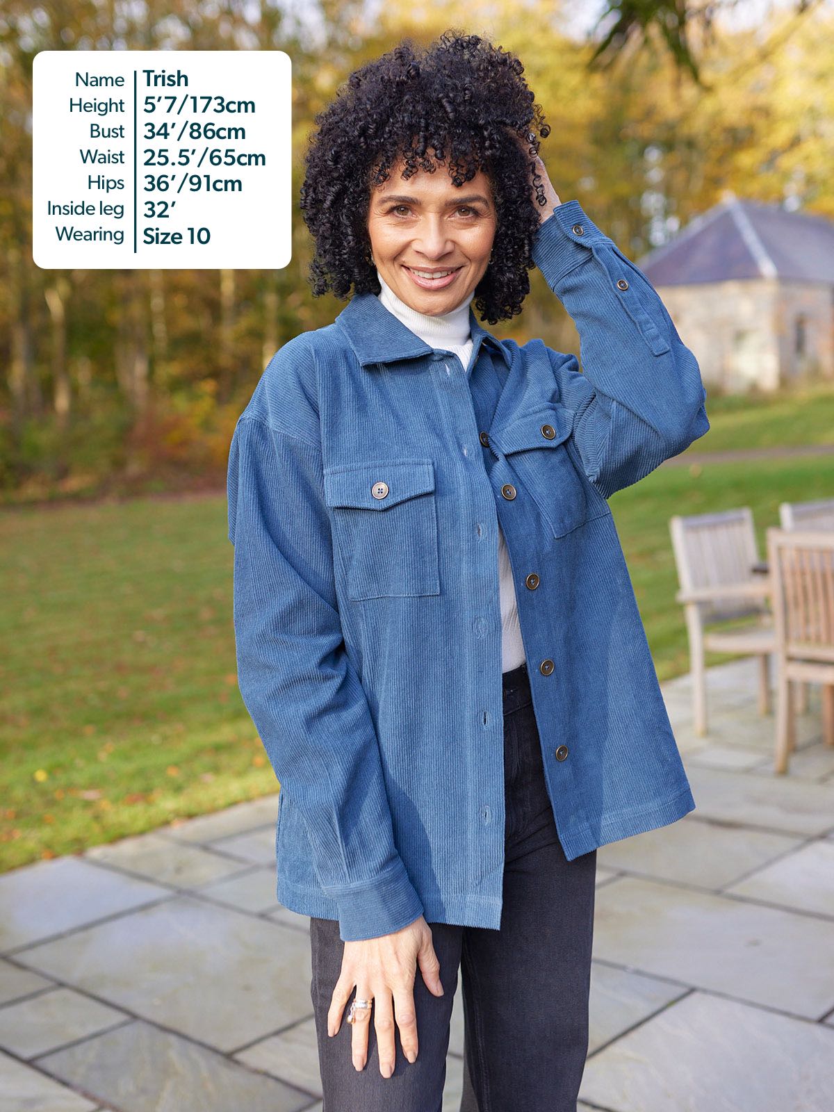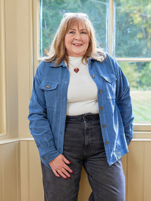 Made from a super soft but cosy corduroy fabric, the Yasmynn shacket is available in two gorgeous autumn/winter colourways - Green and Blue.