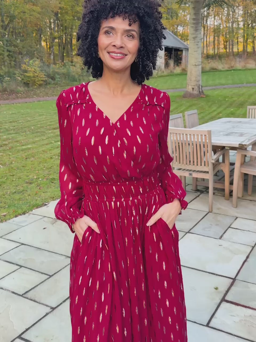 Our stunning new Valerie dress is made for celebrations, and makes us feel all Christmassy inside, even if it’s not quite time yet! The rich burgundy dress is now available with a silver/bronze lurex, making it the perfect party dress - glamorous and festive yet super easy and comfortable to wear all day and night thanks to some Unfolded tweaks!